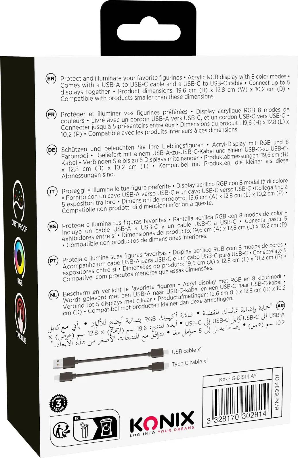 Acrylvitrine mit RGB-Beleuchtung in 8 Farbmodis für eine elegante Präsentation und Staubschutz. Ändern Sie die Atmosphäre je nach Stimmung mit der anpassbaren, lebendigen Beleuchtung, die Ihre Sammlerstücke zur Geltung bringt. Einfaches Aktivieren und Umschalten der Beleuchtungsmodi mit reaktionsschnellen Touch-Bedienelementen für ein nahtloses Erlebnis. Wird über ein mitgeliefertes USB-Kabel betrieben, das mit Standard-USB-Anschlüssen kompatibel ist und eine einfache und bequeme Nutzung ermöglicht.