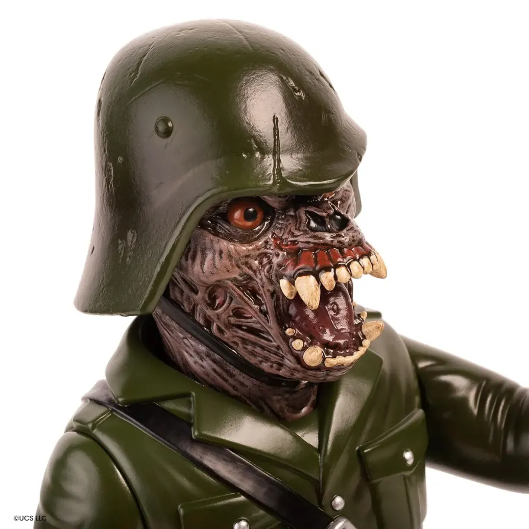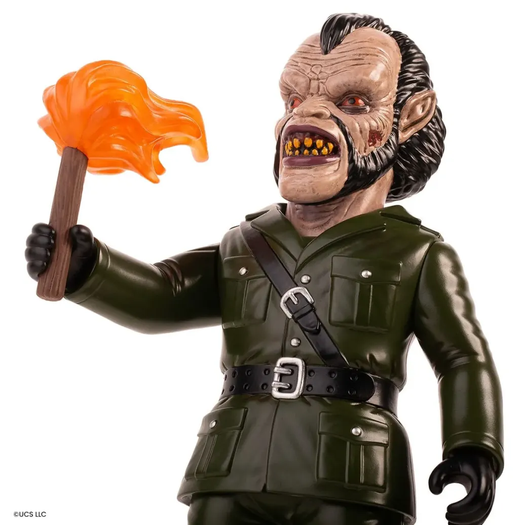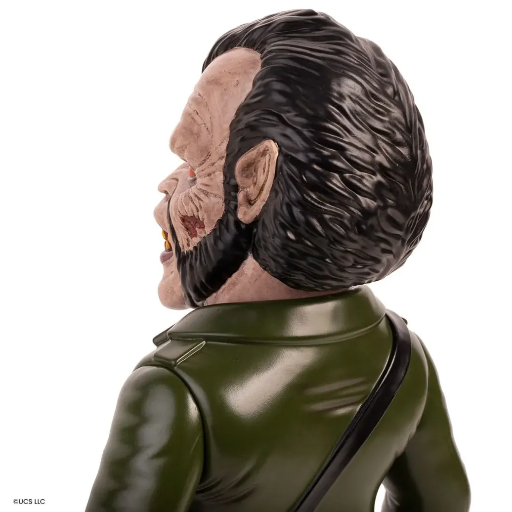 Zu "American Werewolf in London" kommt diese detailreiche Actionfigur. Sie ist ca. 25 cm groß und wird mit weiterem Zubehör und austauschbaren Teilen in einer bedruckten Box geliefert.