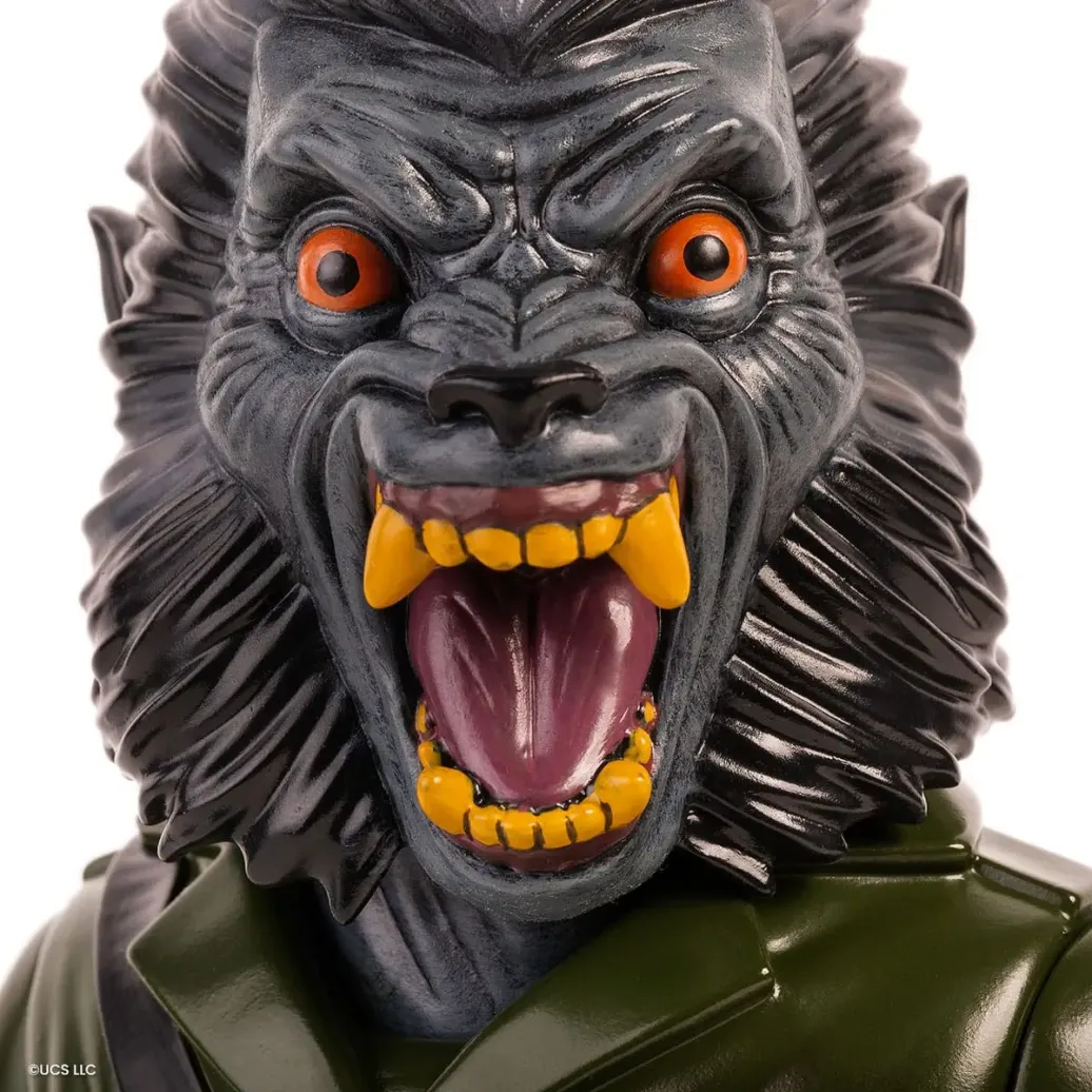 Zu "American Werewolf in London" kommt diese detailreiche Actionfigur. Sie ist ca. 25 cm groß und wird mit weiterem Zubehör und austauschbaren Teilen in einer bedruckten Box geliefert.