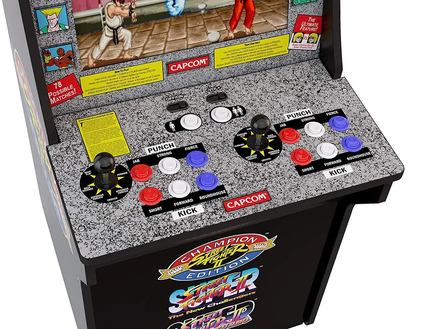 Die Arcade1Up Videospiel-Automaten in der Mini-Cabinet-Größe schließen die Lücke zwischen den TV-Konsolen und der Spielhalle. Mit einer Höhe von 122 cm sind sie perfekt geeignet, um sitzend gespielt zu werden und vermitteln dennoch das Gefühl eines Full-Size-Spielhallen-Automaten.