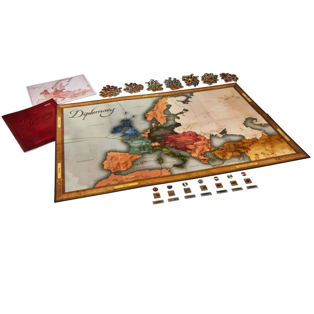 Das kooperative Brettspiel Avalon Hill Diplomacy ist ein Spiel um Verhandlungen, List und Täuschung. Durch das Abschließen von Verträgen und das Bilden von Allianzen erweitern die Spieler ihr Imperium im Europa vor dem Ersten Weltkrieg. Sie müssen dabei aufpassen, wie sie Abmachungen treffen und brechen, verräterische Intrigen aufdecken, verhandeln und andere überlisten, um die Herrschaft über den Kontinent zu erlangen. Ein Strategiespiel, bei dem sich die Spieler auf ihre eigene Gerissenheit und Cleverness verlassen müssen, nicht auf das Glück der Würfel, um den Ausgang zu bestimmen. Avalon Hill Diplomacy ist eine großartige Wahl für alle, die Mehrspieler-Strategiespiele, Spiele zur europäischen Politik und kooperative Brettspiele lieben. Für 2-7 Spieler ab 12 Jahren geeignete. Jede Partie dauert ca. 6 Stunden. Englische Ausgabe.