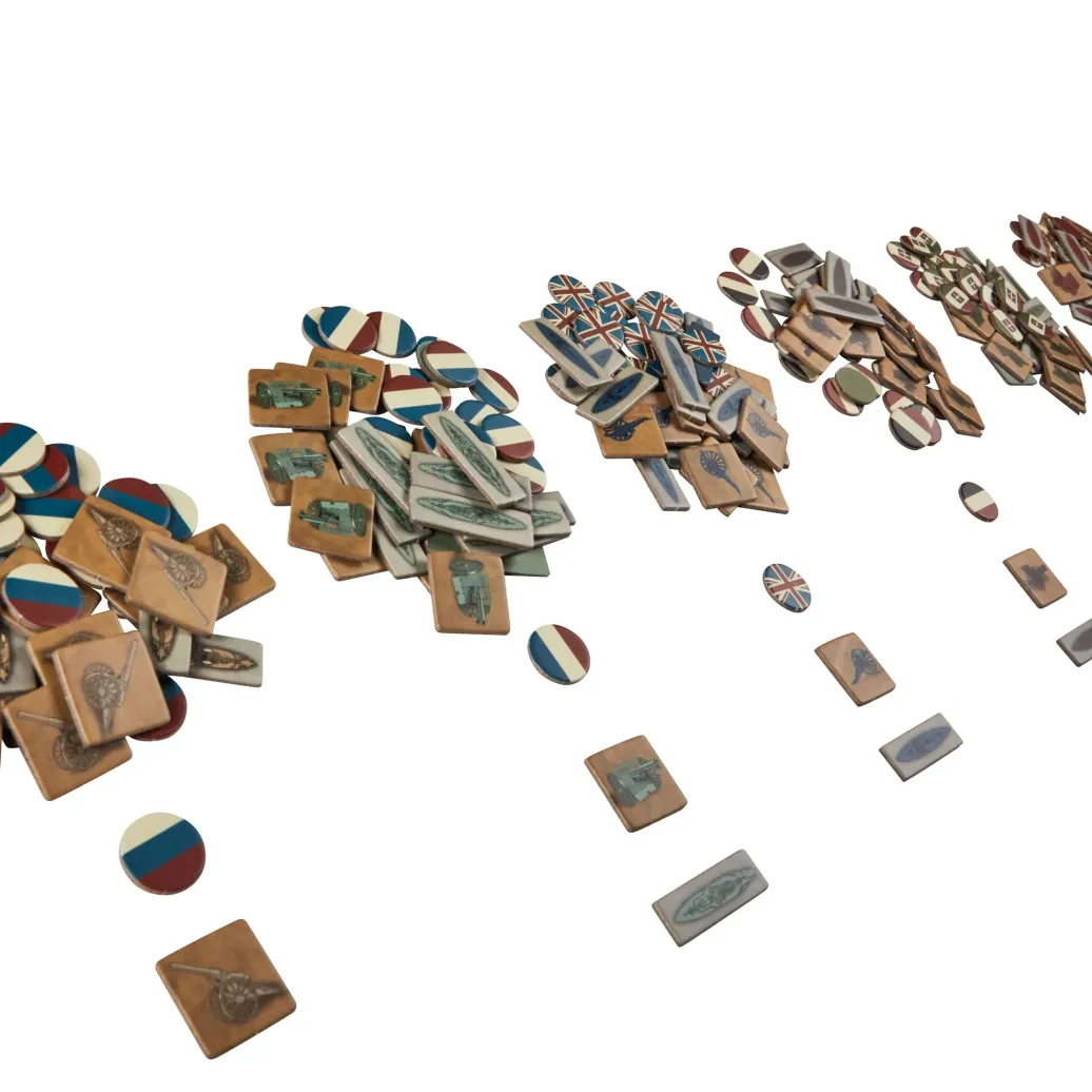 Enthält 315 Spielteile, inklusive 84 Flotten, 84 Armeen, 147 Kontrollmarkierungen, Spielplan, Karte und Regelheft.