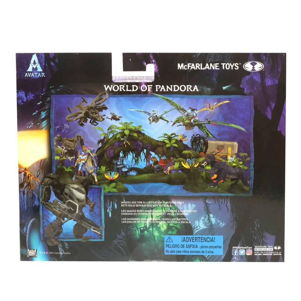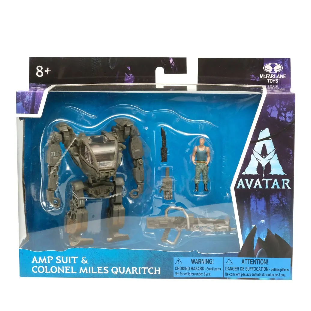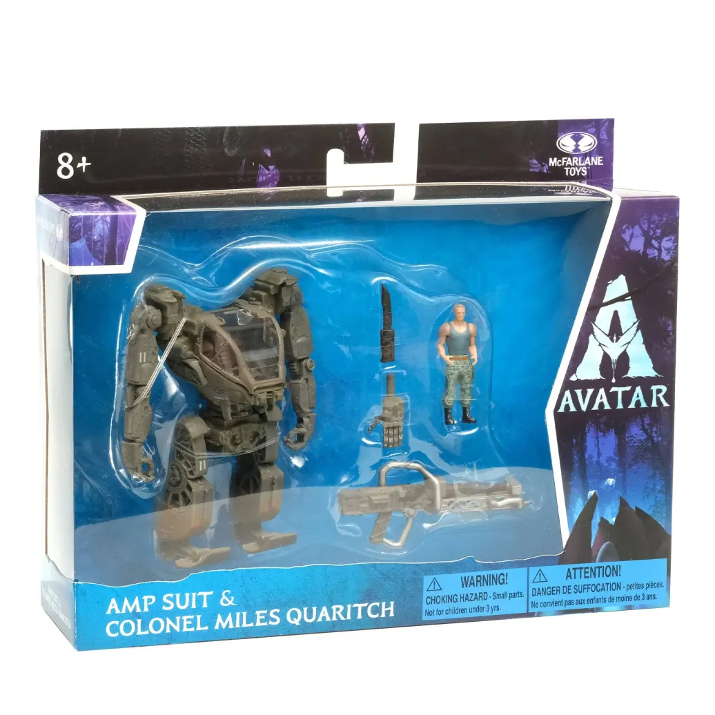 Zum Film "Avatar - Aufbruch nach Pandora" kommt dieses Set mit 2 detailreichen, beweglichen Amp Suit & Colonel Miles Quaritch Actionfiguren. Sie werden mit weiterem Zubehör in einer Fensterbox geliefert. Jede Figur verfügt über einen Biolumineszenz-Effekt, der durch Schwarzlicht aktiviert wird.
