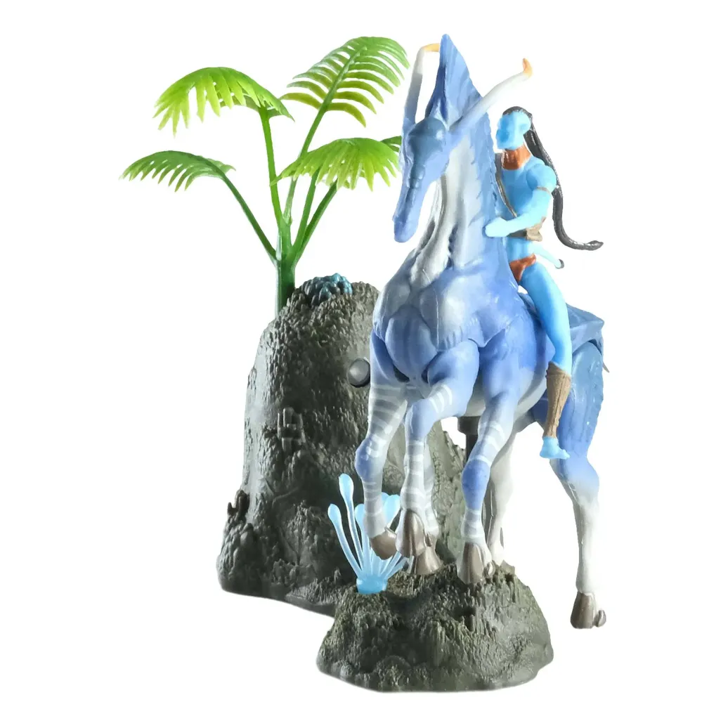 Zum Film "Avatar - Aufbruch nach Pandora" kommt dieses Set mit 2 detailreichen, beweglichen Tsu'tey & Direhorse Actionfiguren. Sie werden mit weiterem Zubehör in einer Fensterbox geliefert. Jede Figur verfügt über einen Biolumineszenz-Effekt, der durch Schwarzlicht aktiviert wird.