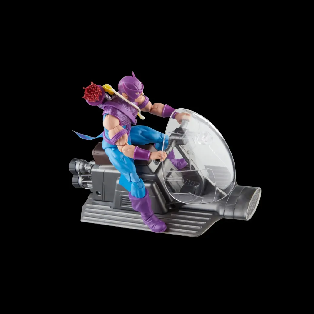 Mit Hawkeye und anderen Action-Figuren aus der Hasbro Marvel Legends Series kann die Spannung des Marvel Universums in der eigenen Sammlung zum Ausdruck gebracht werden. (Zusätzliche Produkte sind separat erhältlich. Je nach Verfügbarkeit.) Der ehemalige Zirkusartist Clint Barton gab sein kriminelles Leben auf, um sich den Avengers als Hawkeye anzuschließen. Mit seinen Bogenschießkünsten auf seinem Sky-Cycle führt er den Kampf gegen die Schurken an, denen kein einziger Held standhalten könnte.Diese Marvel Legends Avengers Action-Sammelfigur zum 60. Jubiläum kommt in einer Figuren-Skala von 15 cm und ist dem Look von Hawkeye in den Marvel Comics detailgetreu nachempfunden. Sie beeindruckt mit Premiumdetails und mehreren Bewegungspunkten sowie einem Sky-Cycle Fahrzeug, auf dem die Figur sitzen kann und 6 Accessoires.