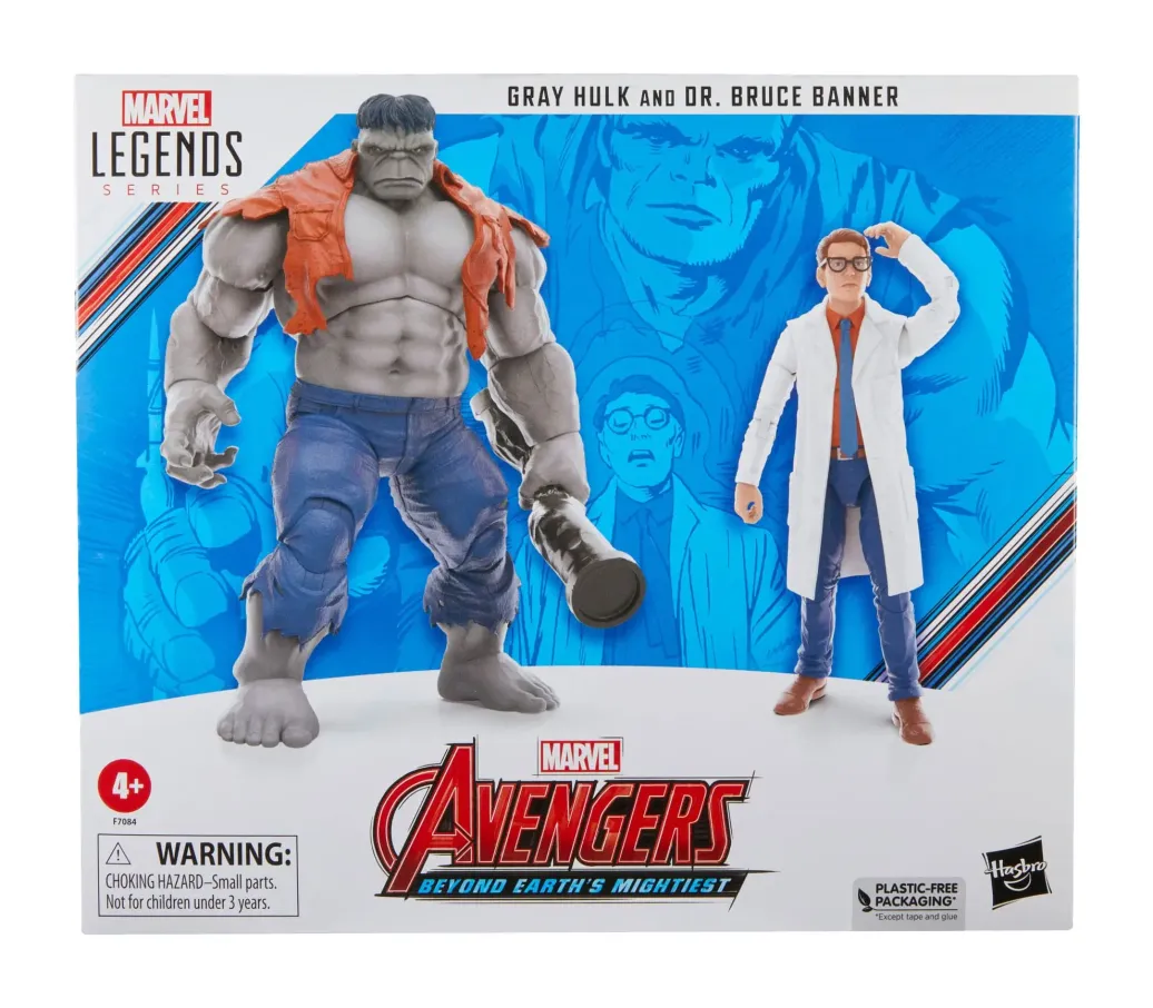 Mit dem grauen Hulk, Doctor Bruce Banner und anderen Action-Figuren aus der Hasbro Marvel Legends Series kann die Spannung des Marvel Universums in der eigenen Sammlung zum Ausdruck gebracht werden. (Zusätzliche Produkte sind jeweils separat erhältlich. Je nach Verfügbarkeit.) Dieses Marvel Legends Avengers 60th Anniversary Sammelset enthält eine graue Hulk Action-Figur und eine Dr. Bruce Banner Figur. Die Figuren (Figuren-Skala 15 cm) sind nach der Erscheinung der Charaktere aus den Marvel Comics Der unglaubliche Hulk gestaltet und präsentieren sich mit Premiumdetails und mehreren Bewegungspunkten. Die Figuren kommen mit 6 Accessoires wie austauschbaren Händen und einem Kopf für Hulk, einem Rohr, einer abnehmbaren Brille und einem Shirt.