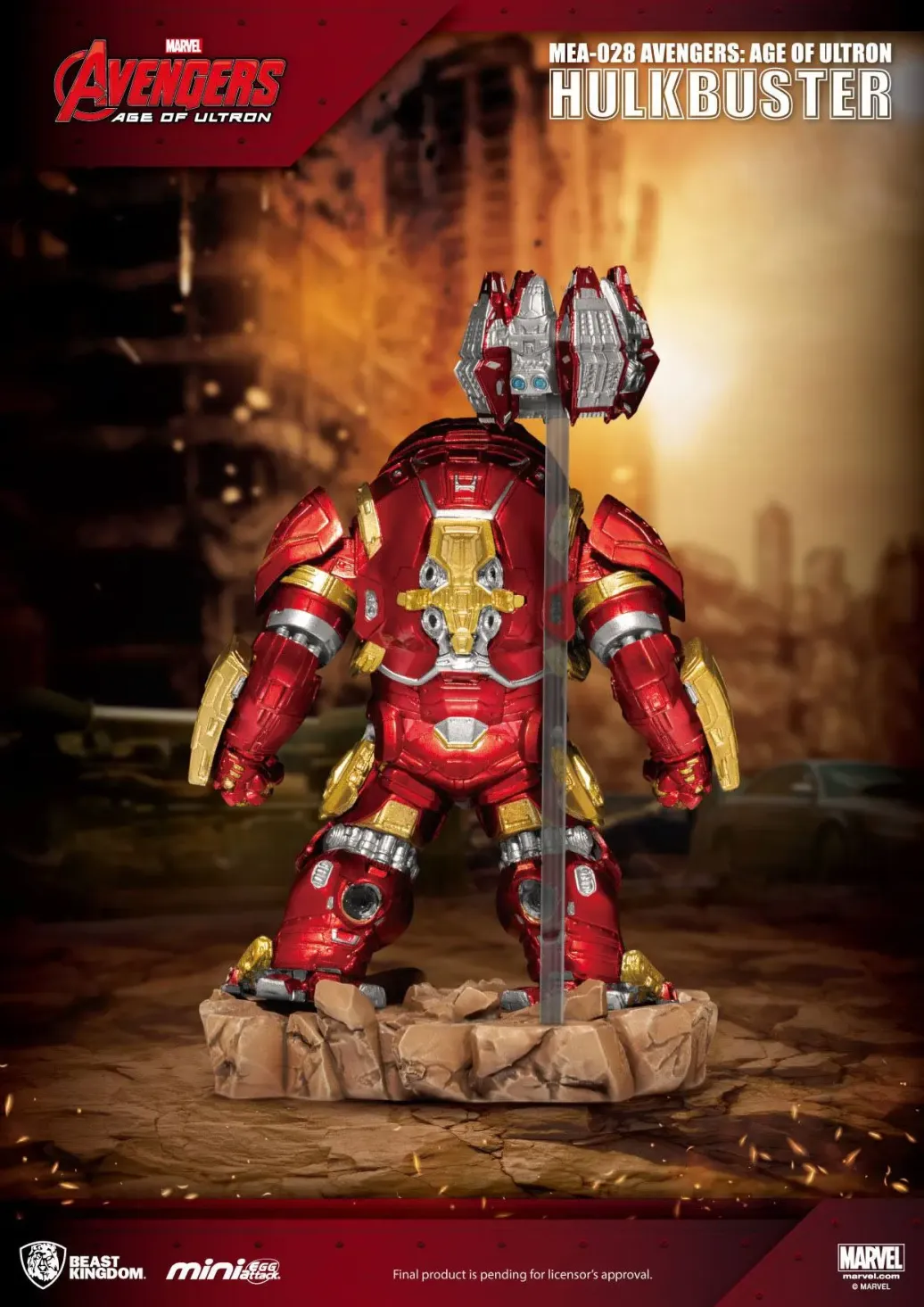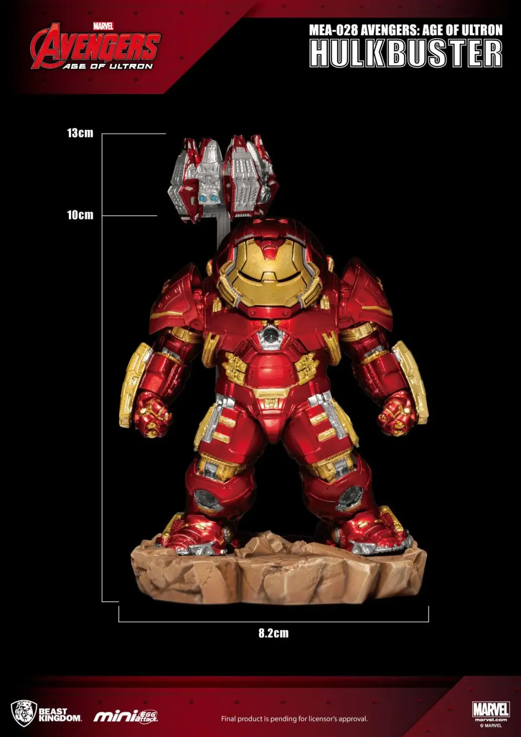 Zum Film Avengers: Age of Ultron kommt diese Hulkbuster Figur aus der Egg Attack Serie von Beast Kingdom Toys. Die aus PVC gefertigte Figur ist ca. 13 cm groß verfügt über eine eingebaute LED Leuchtfunktion und wird mit jeder Menge Zubehör sowie Austauschteilen in einer Fensterbox geliefert.