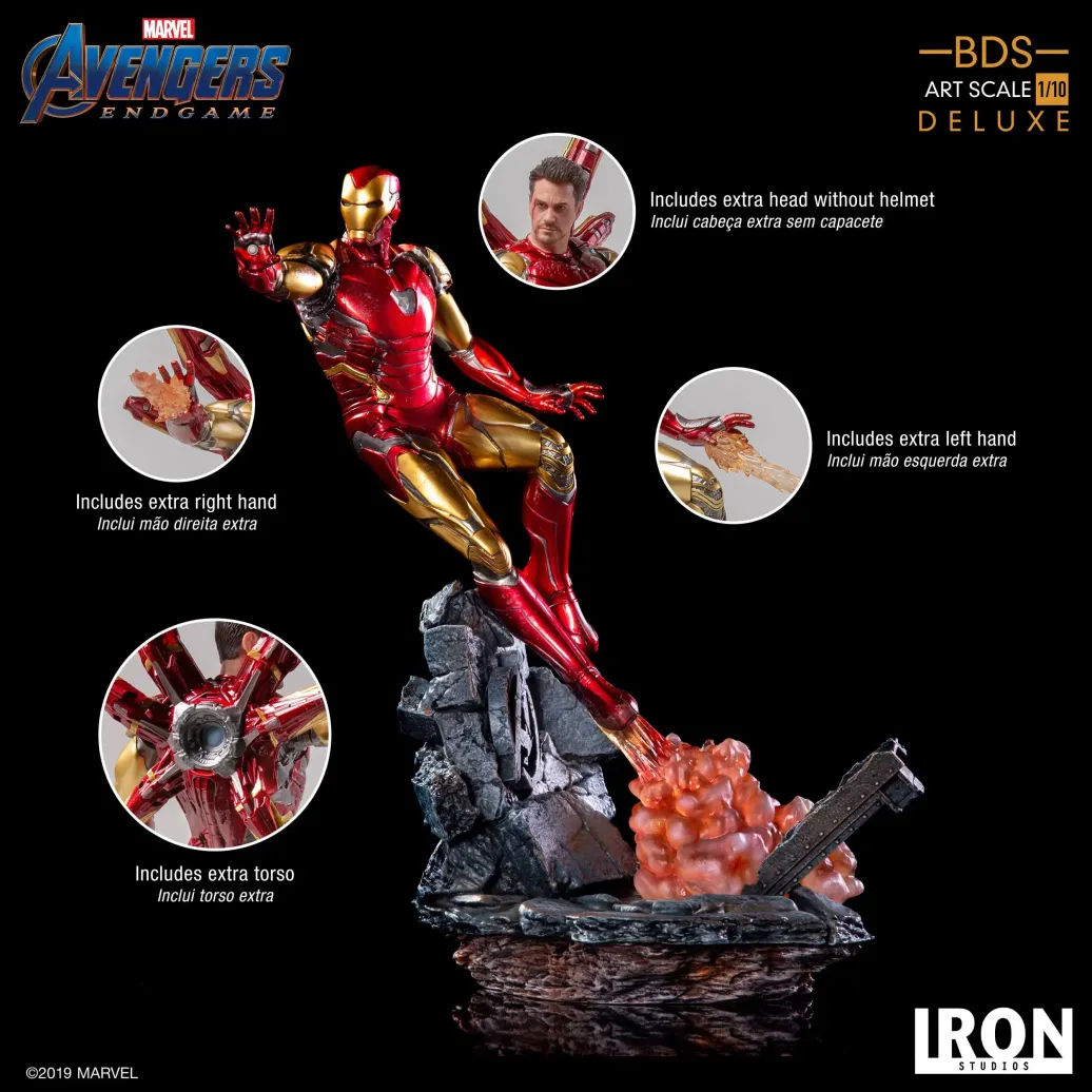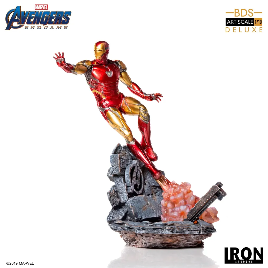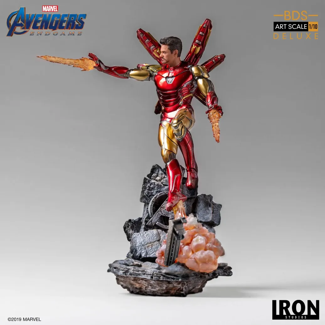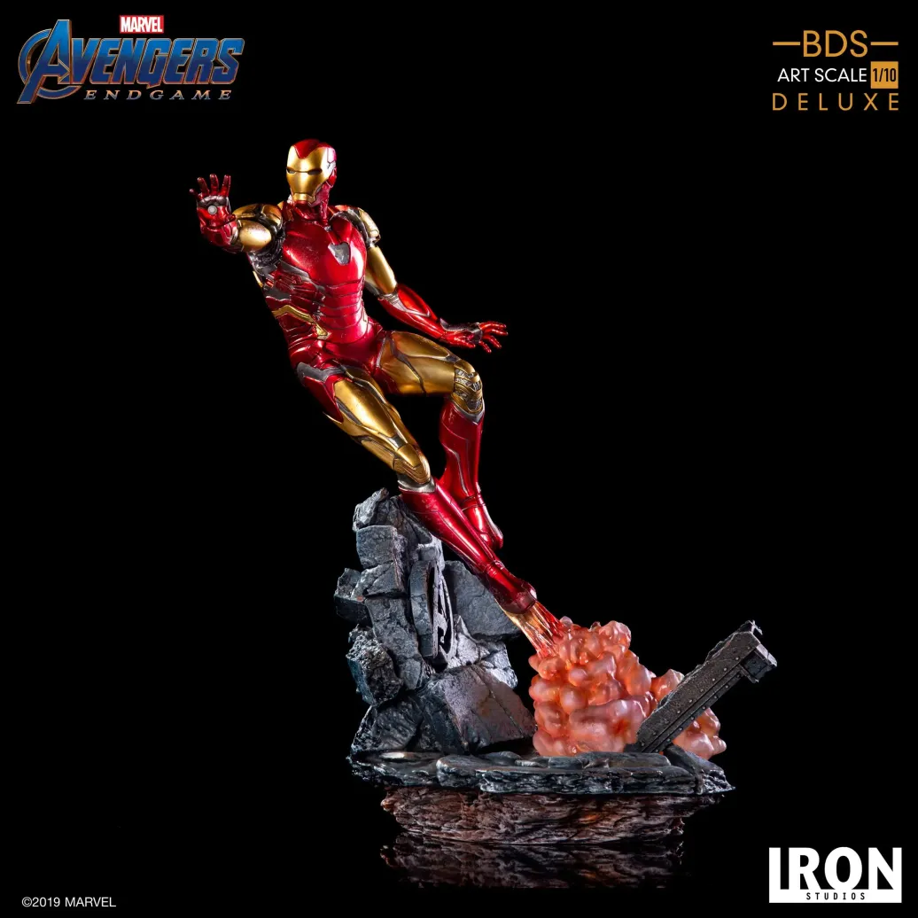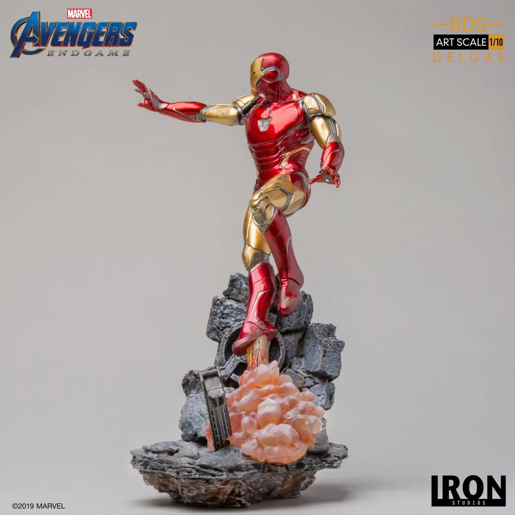 Zum Marvel Blockbuster Avengers: Endgame kommt diese offiziell lizenzierte Iron Man Mark LXXXV Statue aus Resin. Die im Maßstab 1/10 gehaltene Statue ist ca. 29 cm groß und kommt mit passender Diorama-Base.