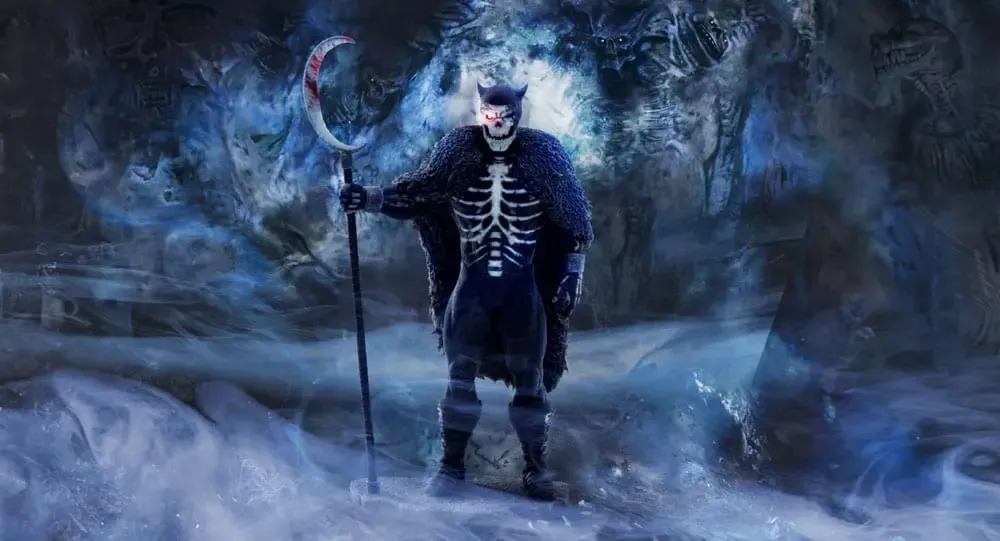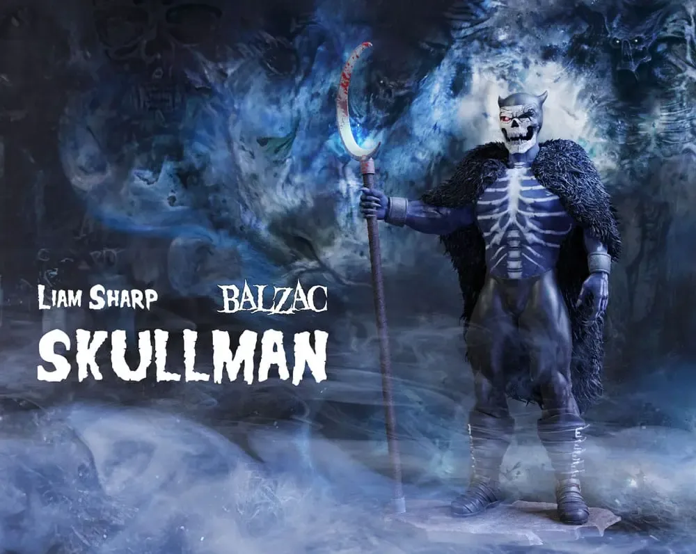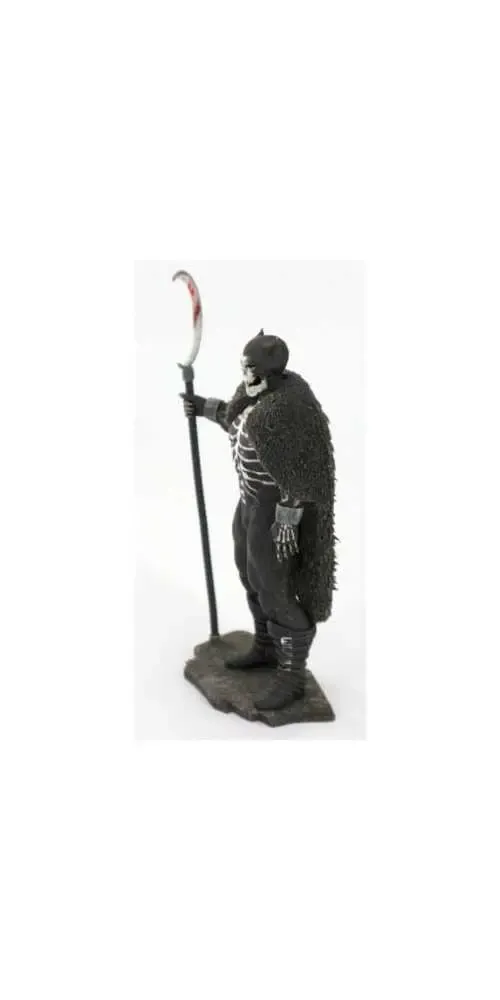 An dieser Darstellung orientiert sich das Design der Statue "Skullman". Liam Sharp ist für seinen detaillierten und dynamischen Zeichenstil bekannt. Von der Stiefelschnalle bis hin zu den grausamen Krallen bildet die Statue präzise die nordische Version des Sensenmanns nach getaner Arbeit ab. Man sieht sogar noch das frische Blut von der Sichel tropfen. Im Maßstab 1/12 gehalten, wird die Statue durch ein hochwertiges Kartondiorama mit passendem Hintergrund ergänzt, was die Atmosphäre und den Horror des Designs weiter verstärkt.