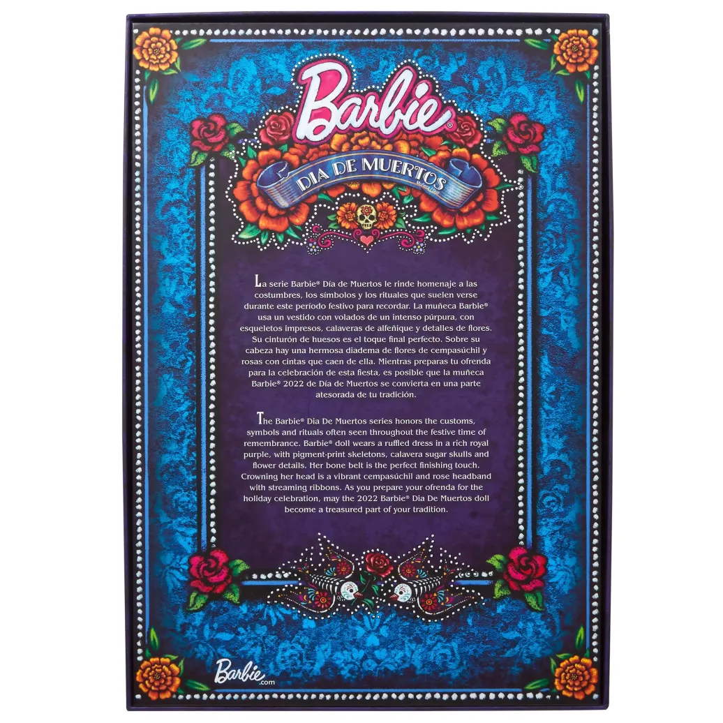 Aus Barbies "Signature"-Serie kommt diese schöne Puppe, herausgegeben zum Tag der Toten 2022. Enthält: Puppenständer, Echtheitszertifikat. Die Puppe kann nicht von allein stehen. Abweichungen in Farbe und Gestaltung vorbehalten.