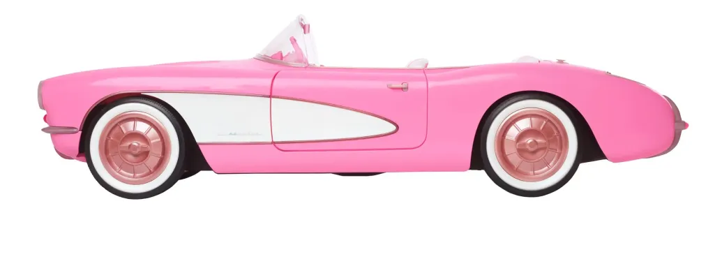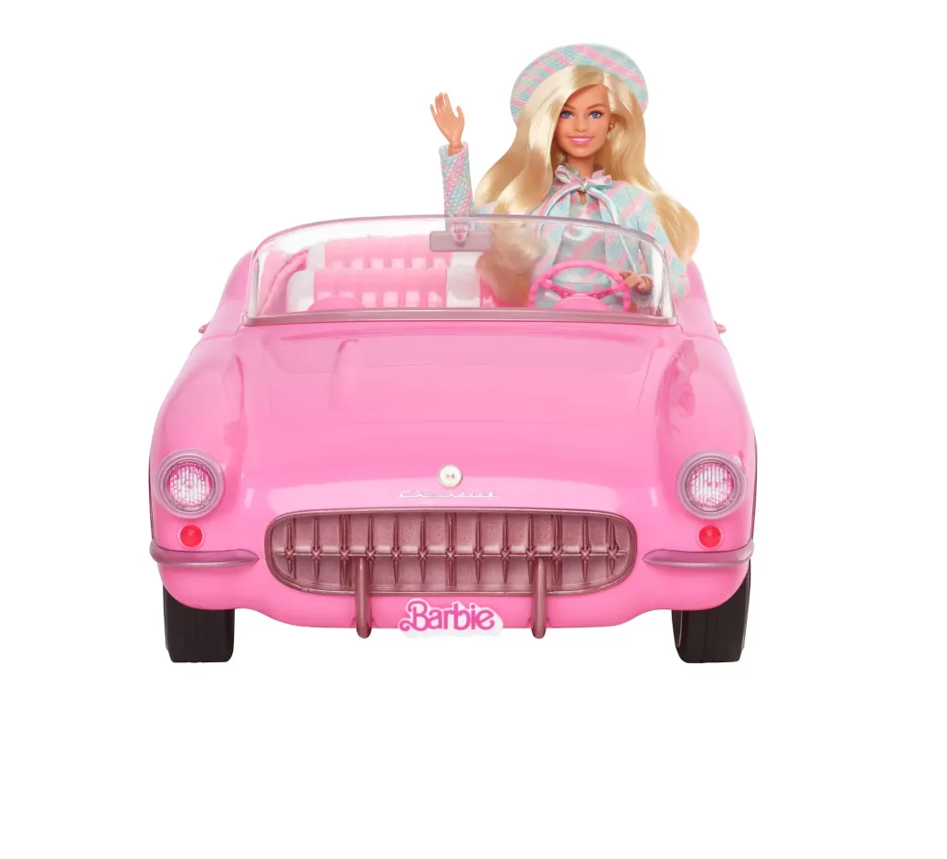 Fahrzeug zum 2023er Barbie Realfilm mit funktionierenden Türen und Kofferraumdeckel und lenkbaren Rädern. Puppen sind keine enthalten.