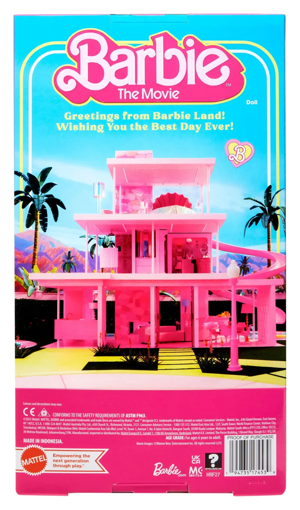 Original Mattel Barbie Puppe zum 2023er Barbie Realfilm. Sie wird mit Bekleidung in einer Fensterbox geliefert. Puppe kann nicht alleine stehen.