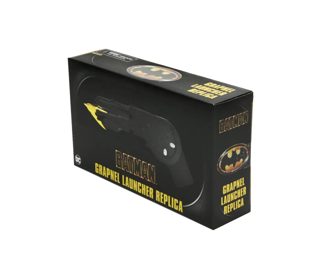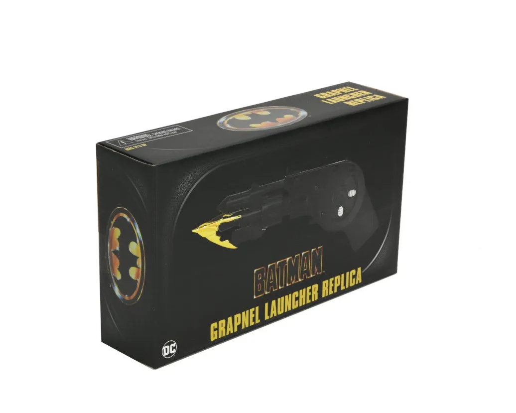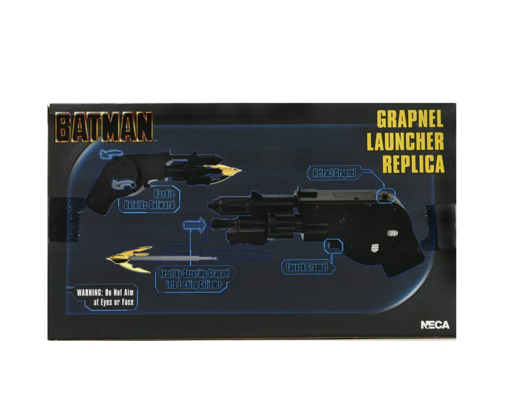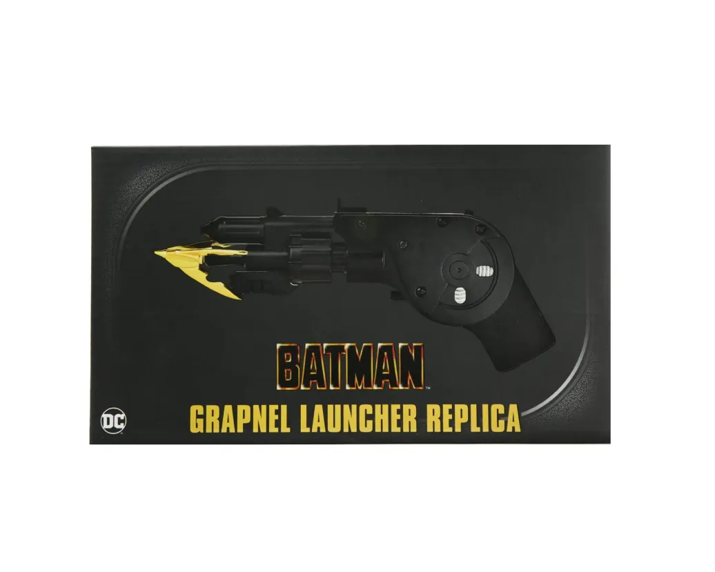 Zu Tim Burtons 1989er Batman kommt diese offiziell lizenzierte und originalgetreute Nachbildung von Batmans Grapnel Launcher. Er ist ca. 18 cm lang und wird in einem bedruckten Karton geliefert. Per Knopfdruck rollt sich das Seil nach einem Abschuss wieder automatisch auf.