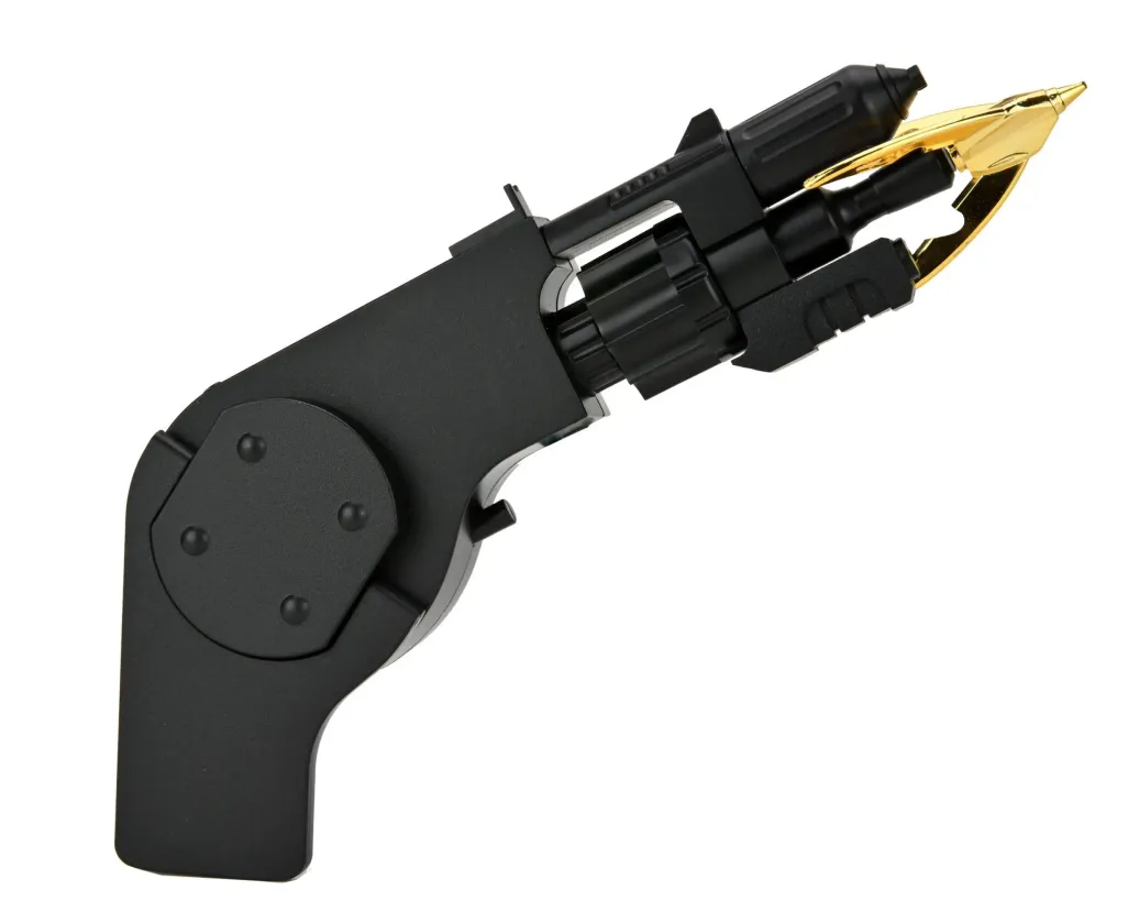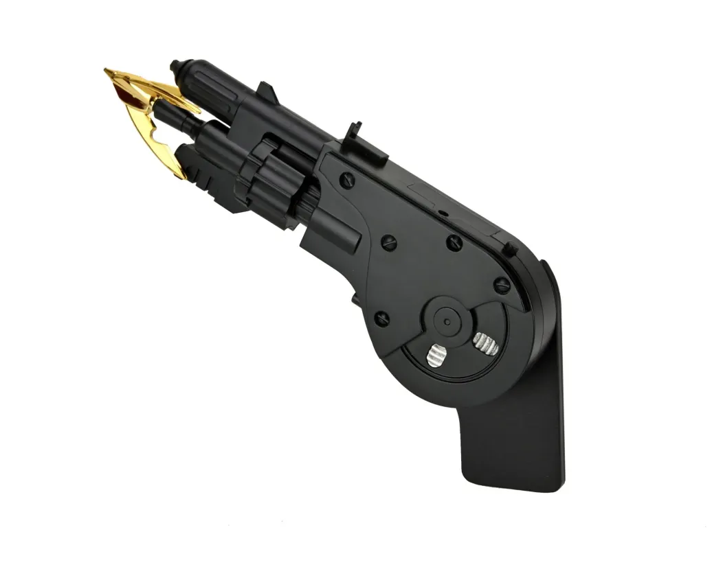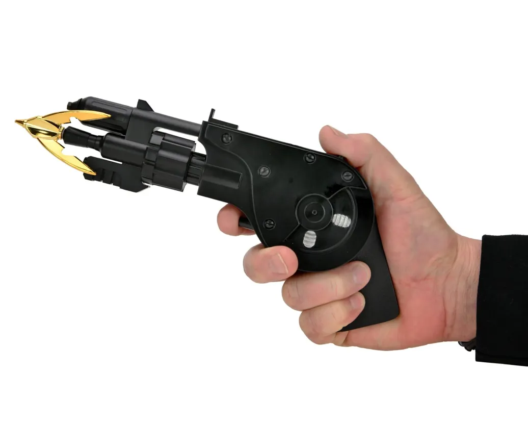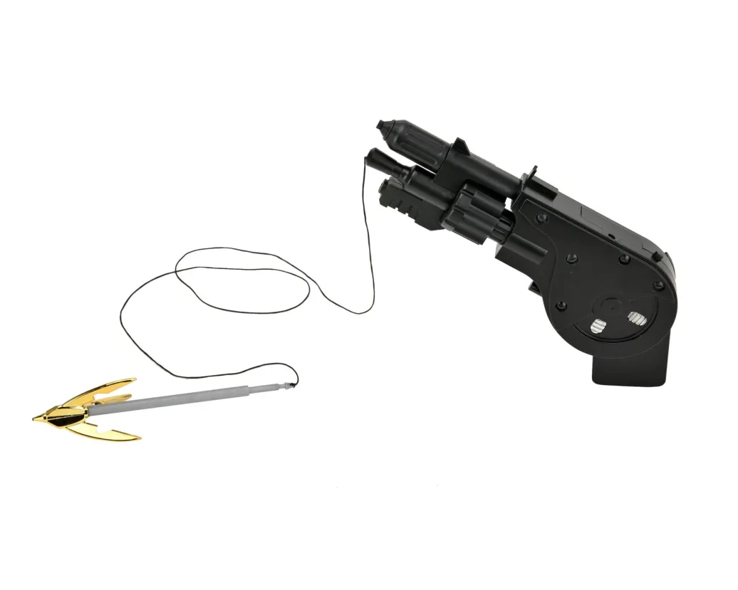 Zu Tim Burtons 1989er Batman kommt diese offiziell lizenzierte und originalgetreute Nachbildung von Batmans Grapnel Launcher. Er ist ca. 18 cm lang und wird in einem bedruckten Karton geliefert. Per Knopfdruck rollt sich das Seil nach einem Abschuss wieder automatisch auf.