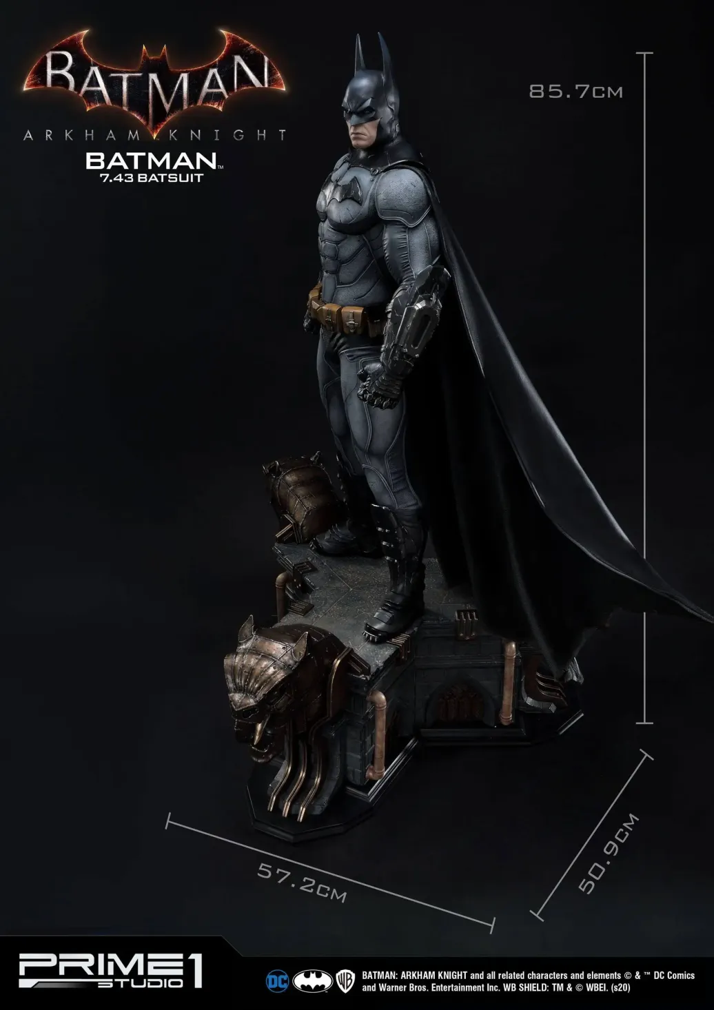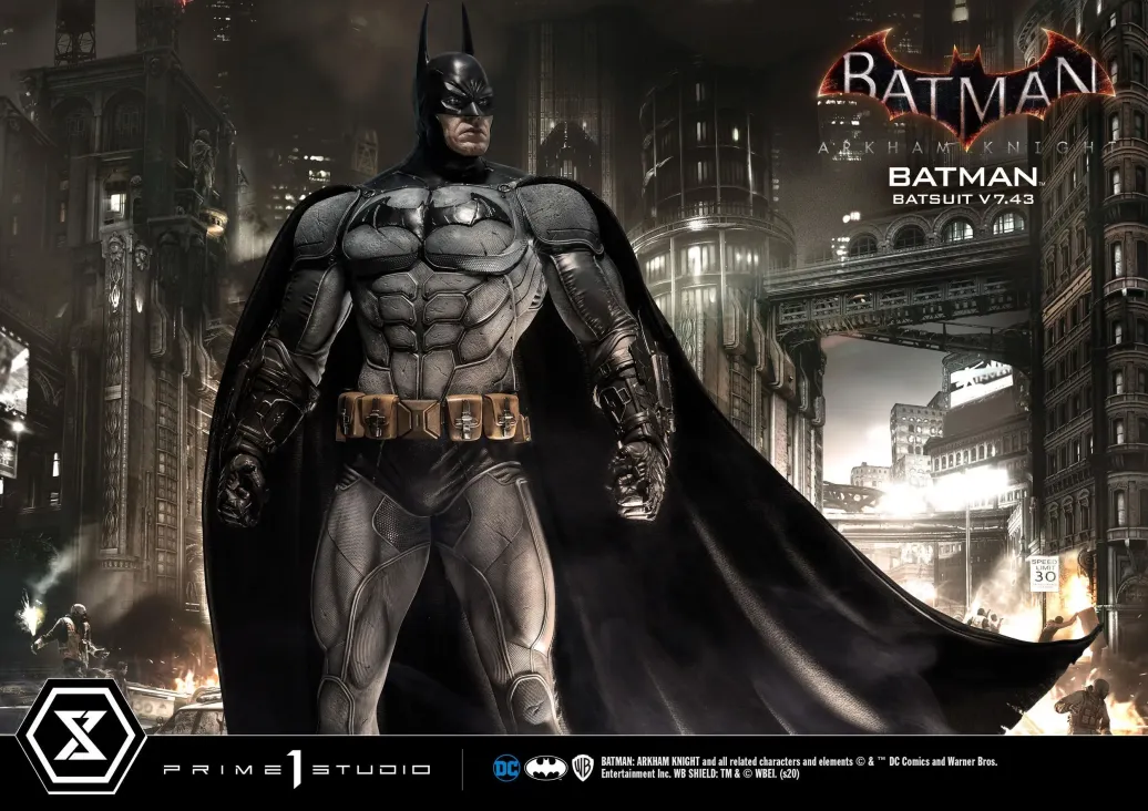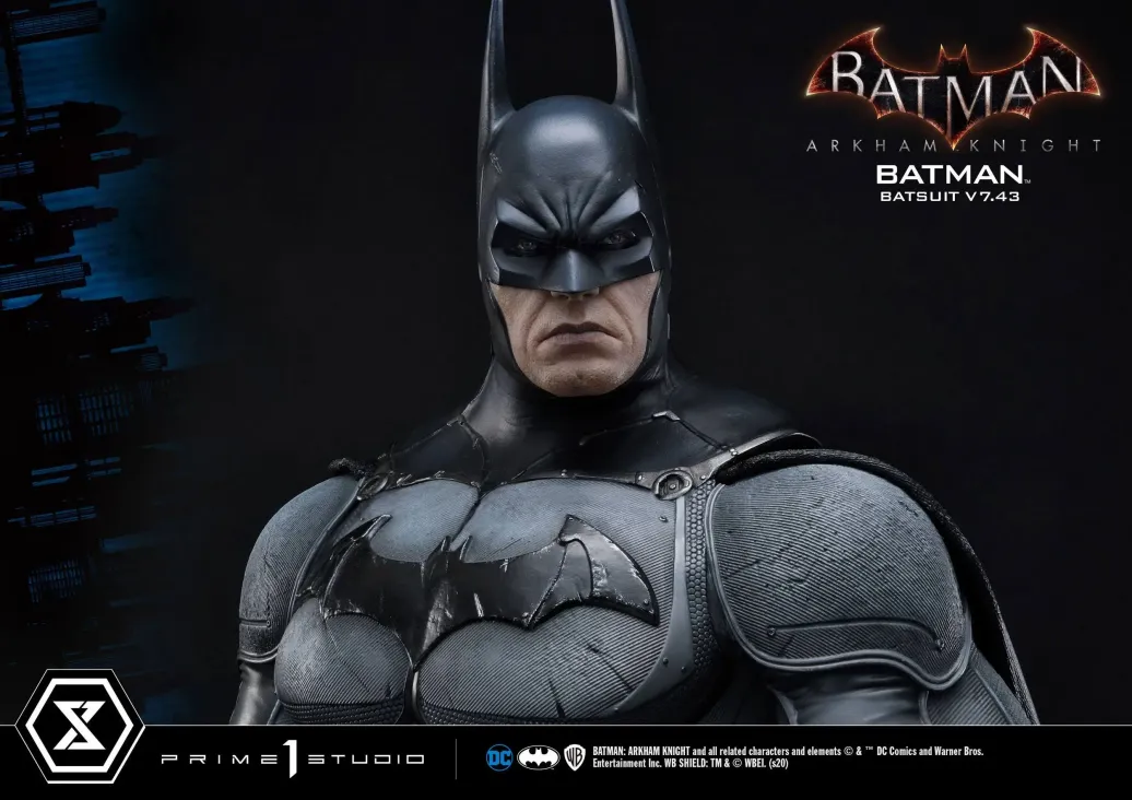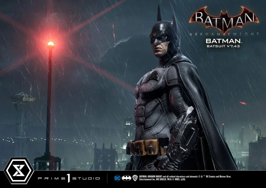 Zum Videospiel Batman Arkham Knight kommt diese fantastische Statue von Batman im Maßstab 1:3. Sie ist ca. 86 cm groß und wurde aus hochwertigem Polystone gefertigt. Sie zeigt Batman im v7.43 Batsuit.