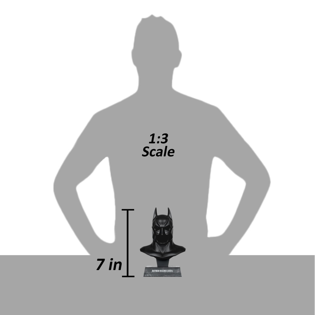Aus der "DC Direct" Reihe kommt diese detailreiche Nachbildung der Batman-Maske im Maßstab 1/3. Die Maske ist ca. 19 cm groß und kommt mit einem Ständer zur ansprechenden Präsentation.