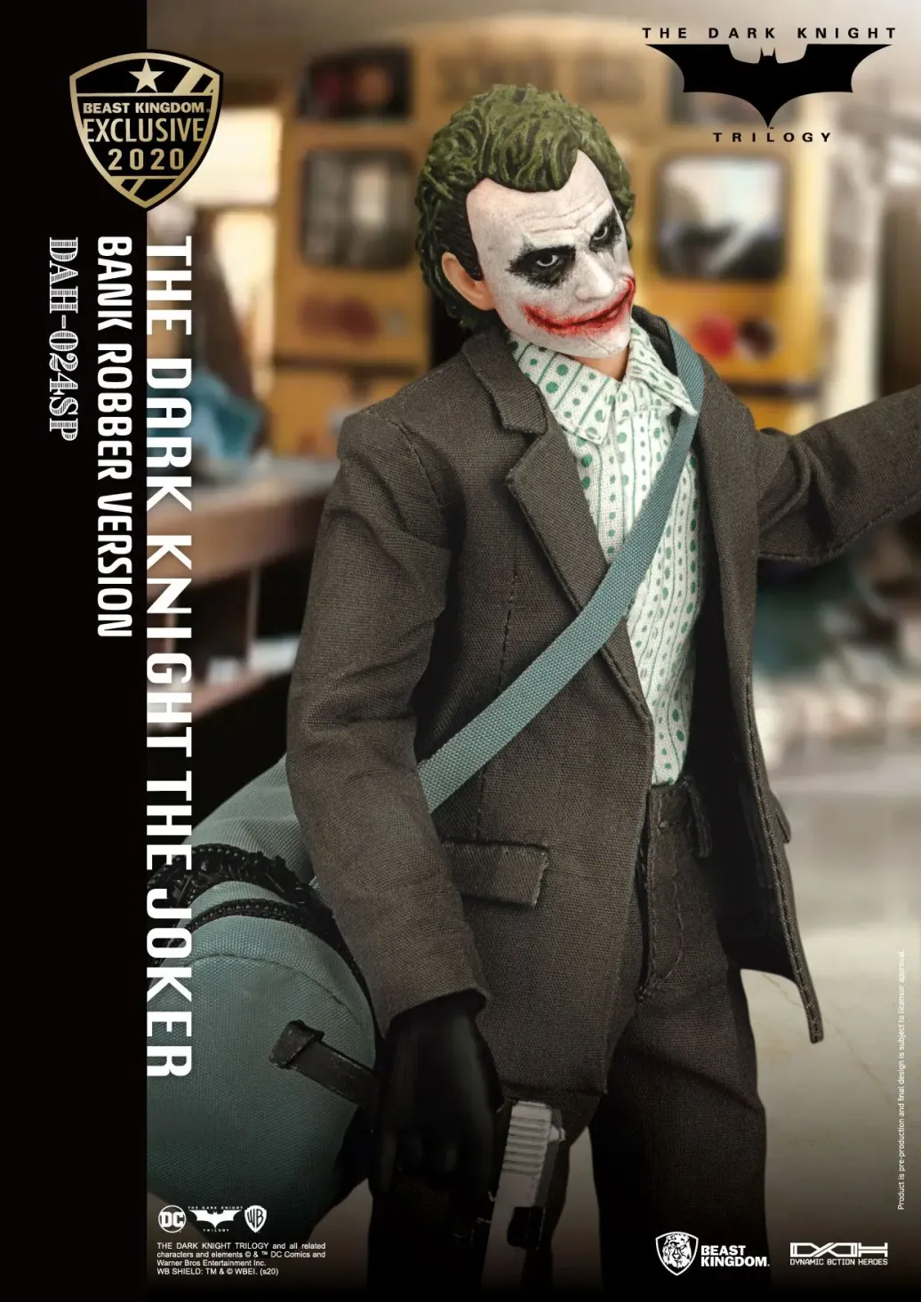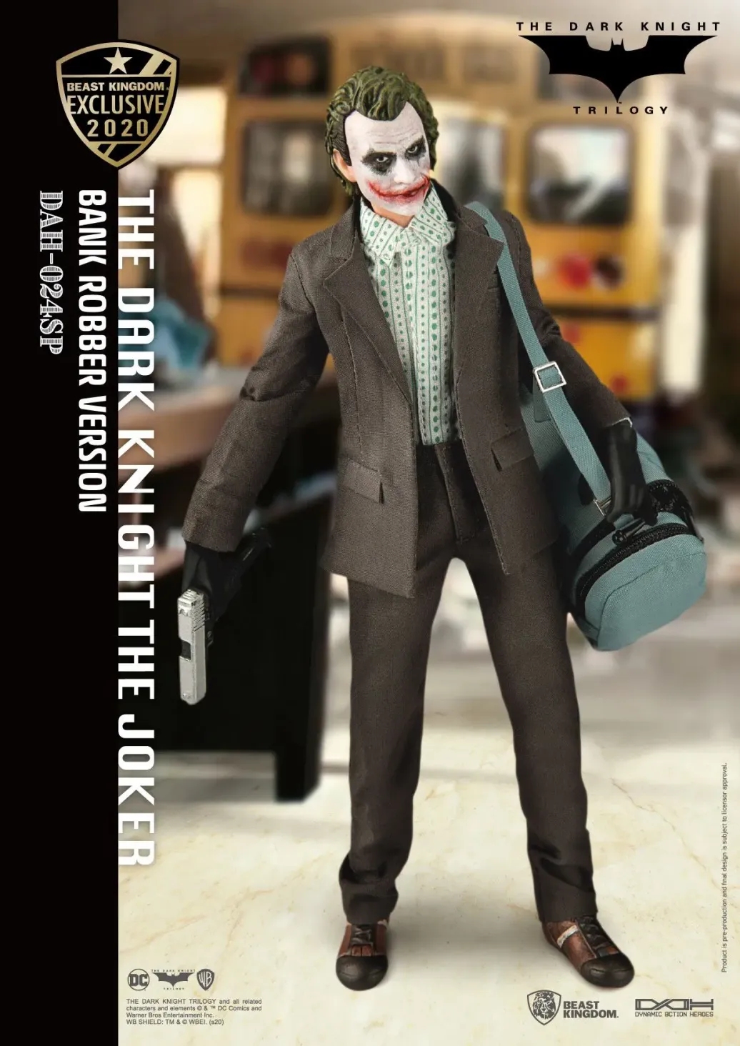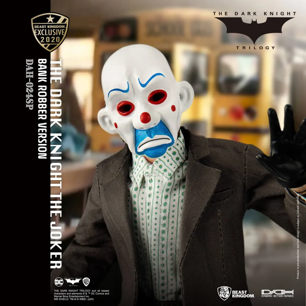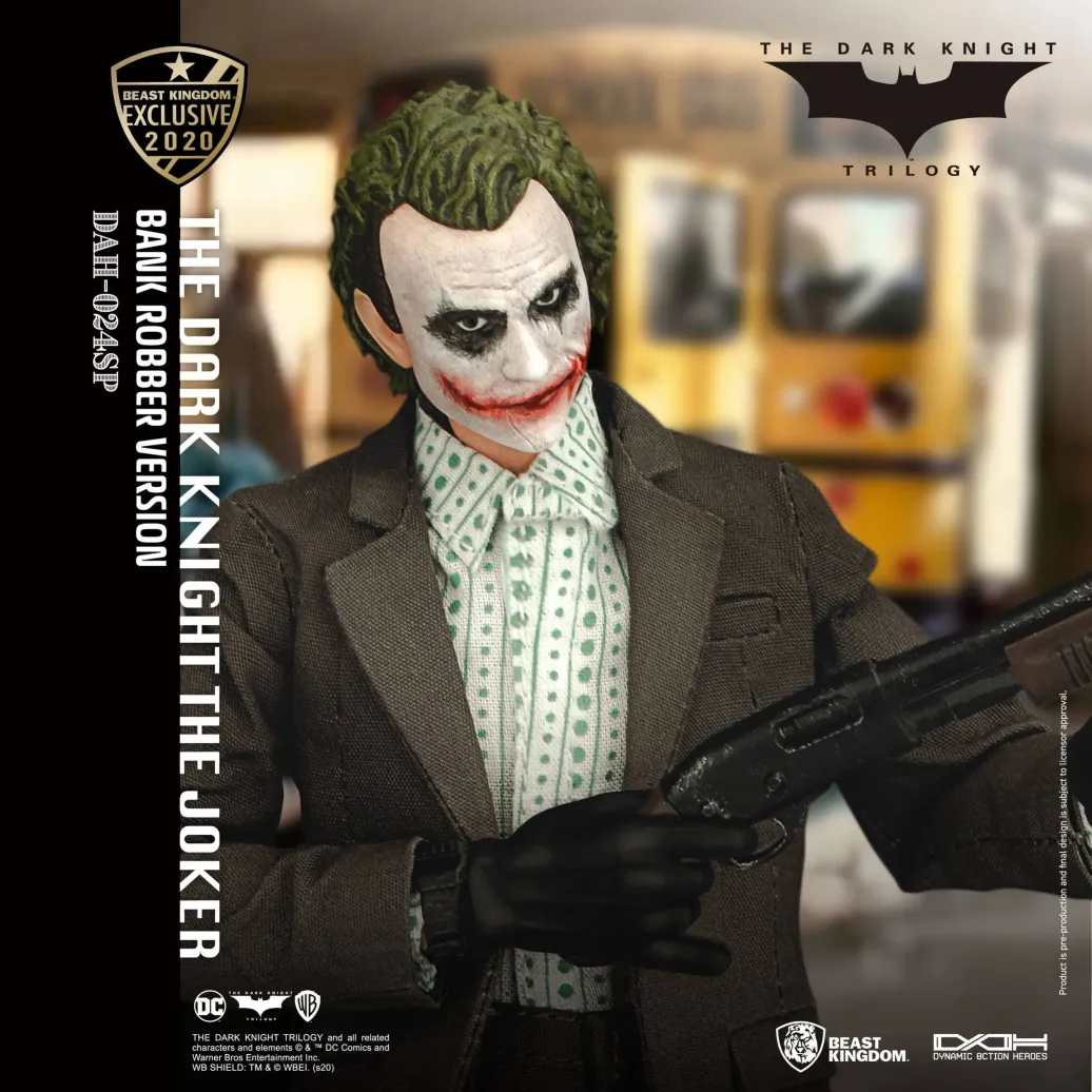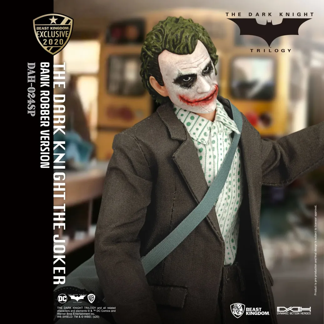 Zum DC Blockbuster Batman The Dark Knight kommt diese großartige The Joker Actionfigur im Maßstab 1:9 aus der Dynamic 8ction Heroes Serie von Beast Kingdom Toys. Sie ist ca. 21 cm groß und wird mit weiteren Austausch- und Zubehörteilen in einer bedruckten Box geliefert.