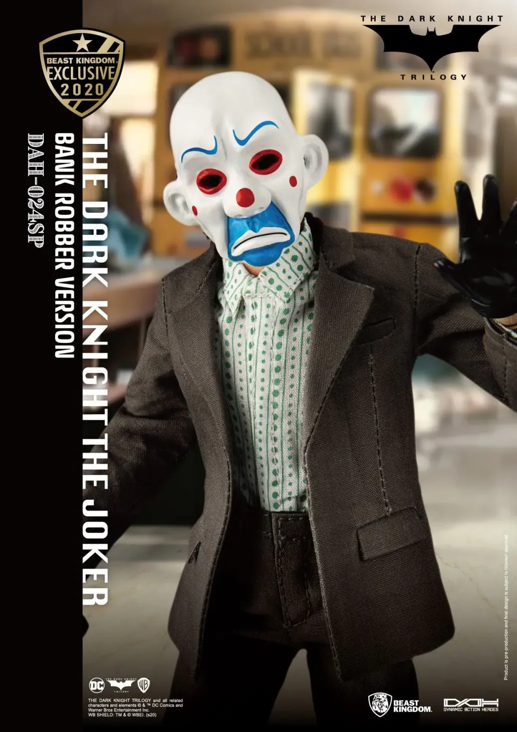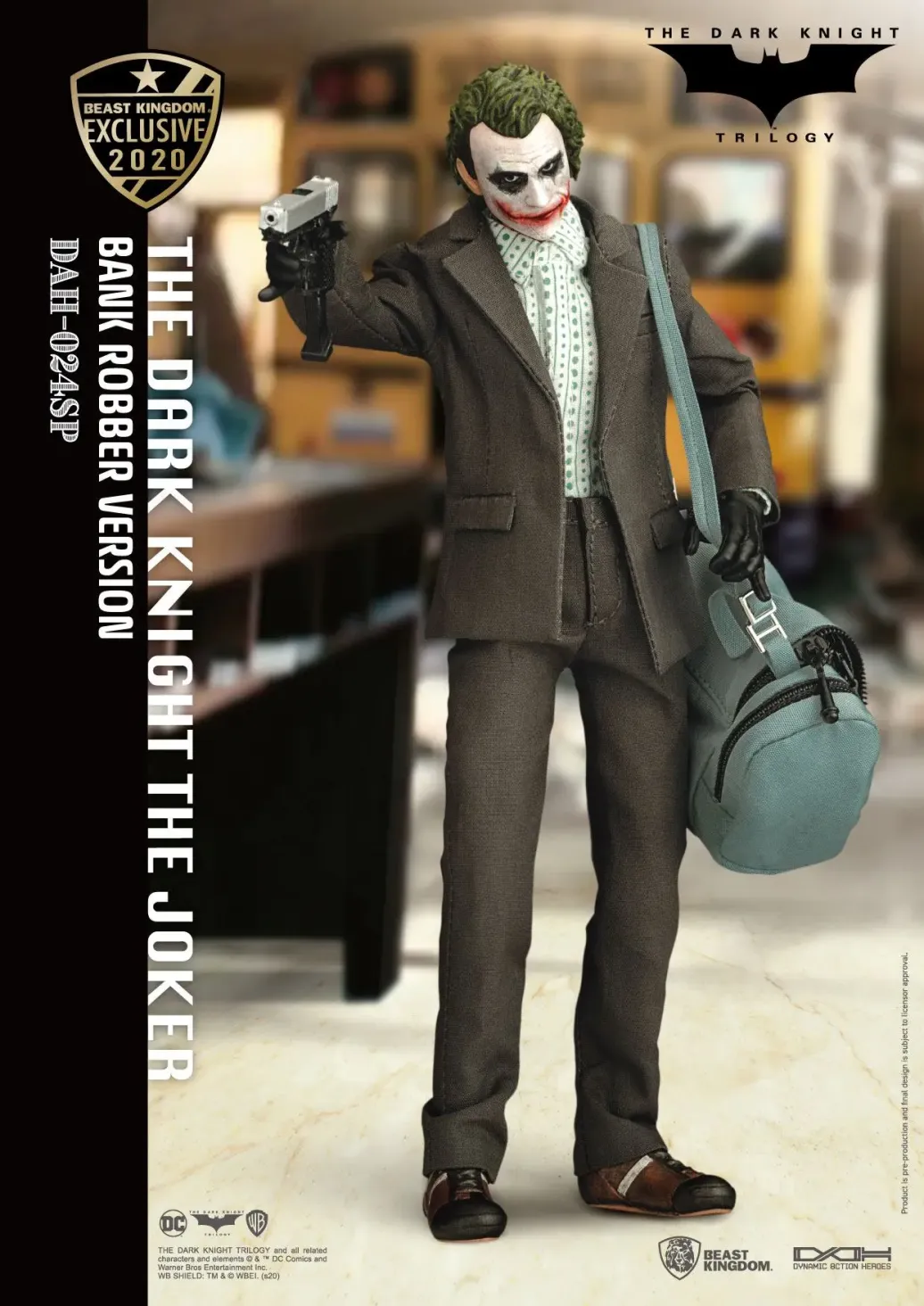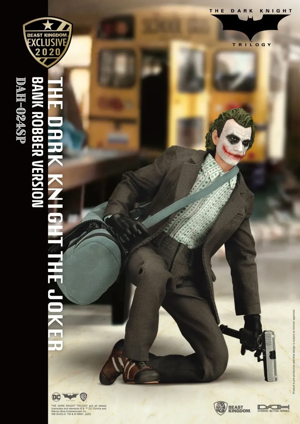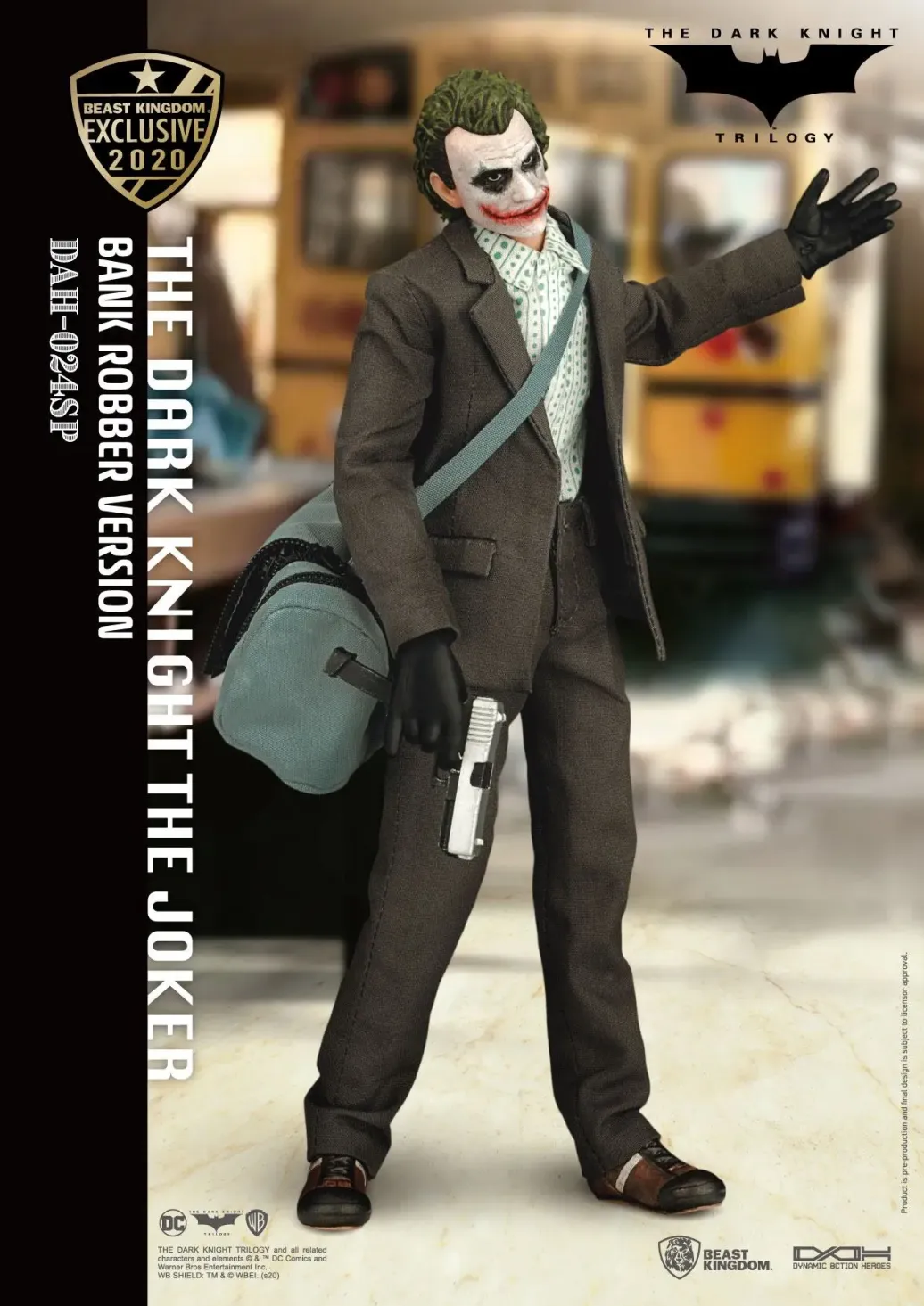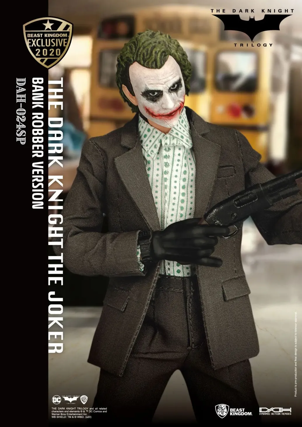 Zum DC Blockbuster Batman The Dark Knight kommt diese großartige The Joker Actionfigur im Maßstab 1:9 aus der Dynamic 8ction Heroes Serie von Beast Kingdom Toys. Sie ist ca. 21 cm groß und wird mit weiteren Austausch- und Zubehörteilen in einer bedruckten Box geliefert.
