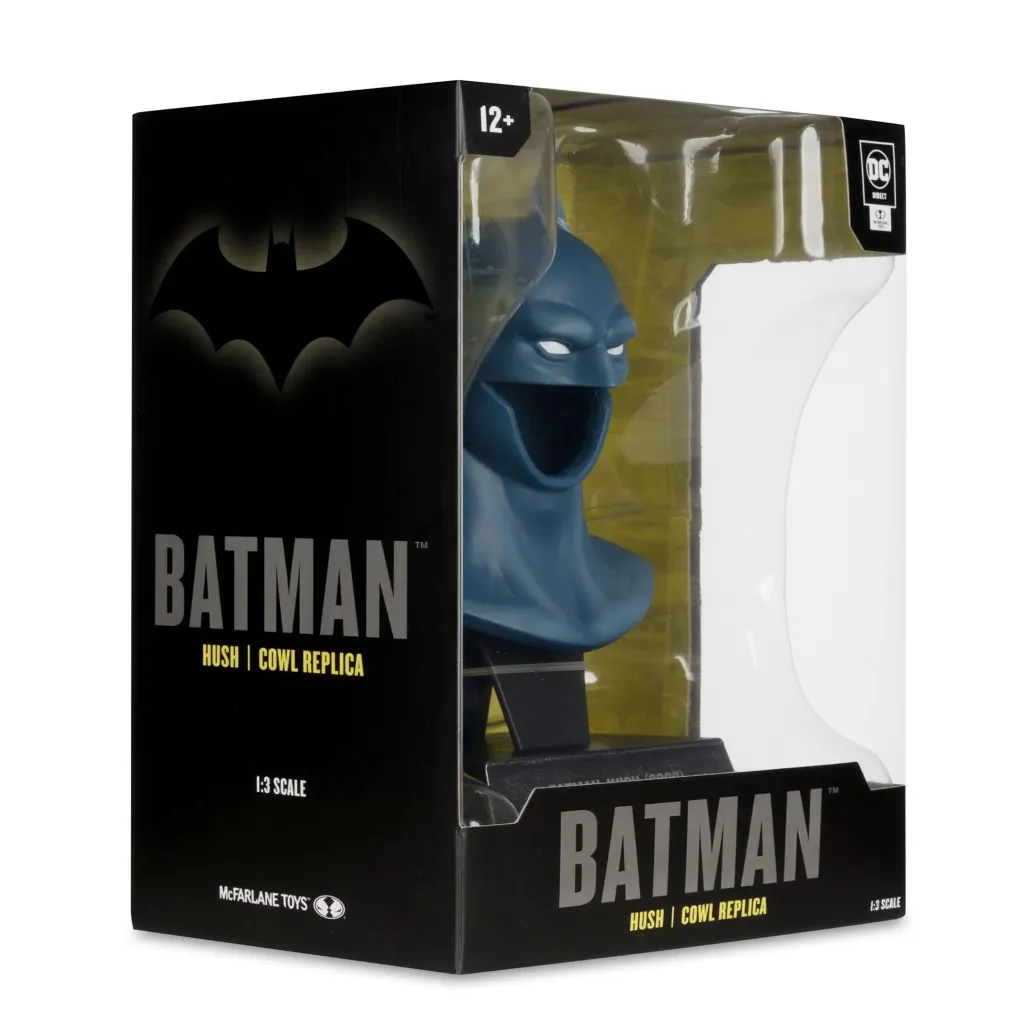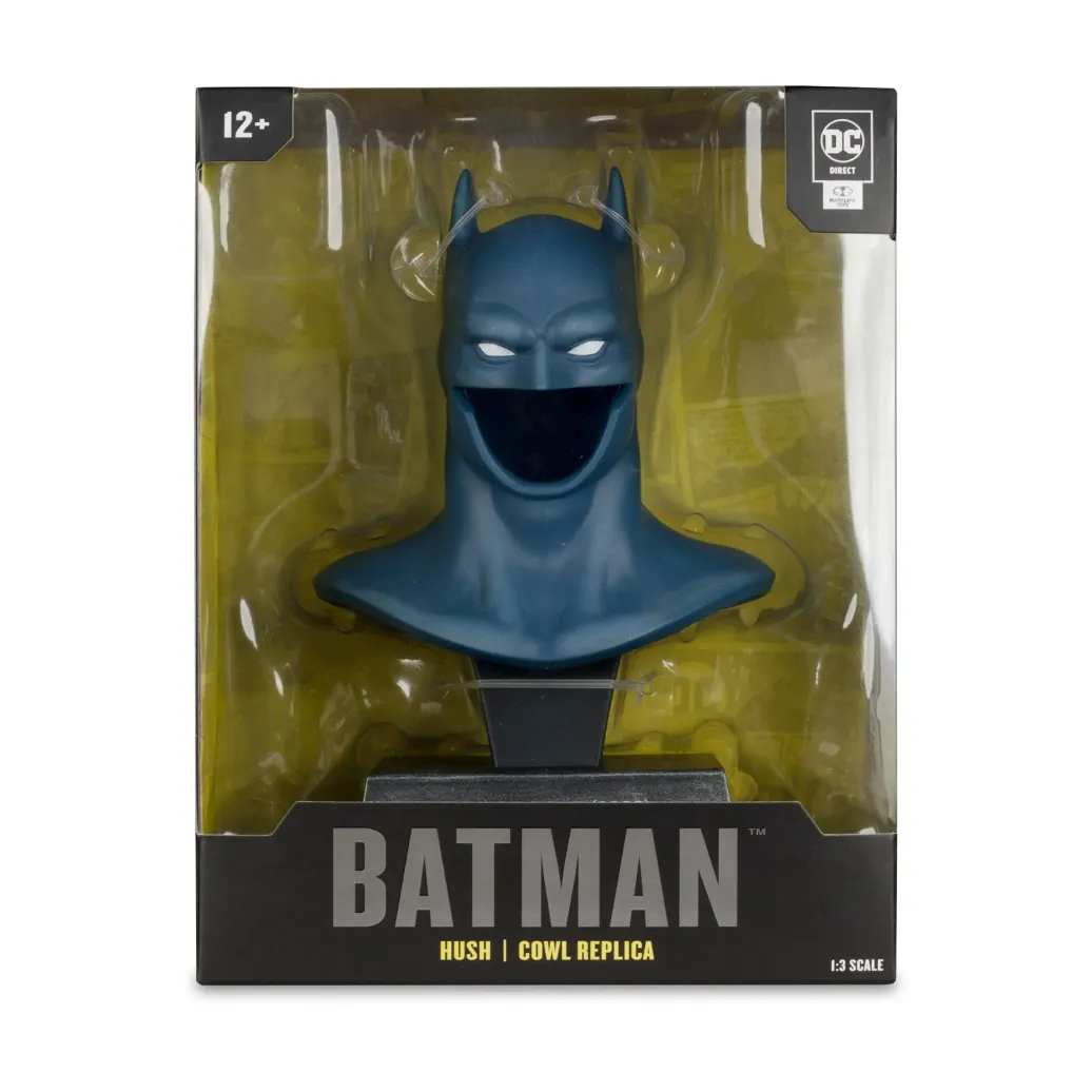 Aus der "DC Direct" Reihe kommt diese detailreiche Nachbildung der Batman-Maske im Maßstab 1/3. Die Maske ist ca. 19 cm groß und kommt mit einem Ständer zur ansprechenden Präsentation.