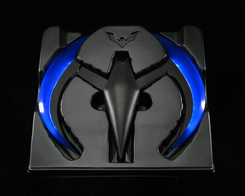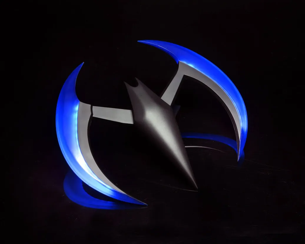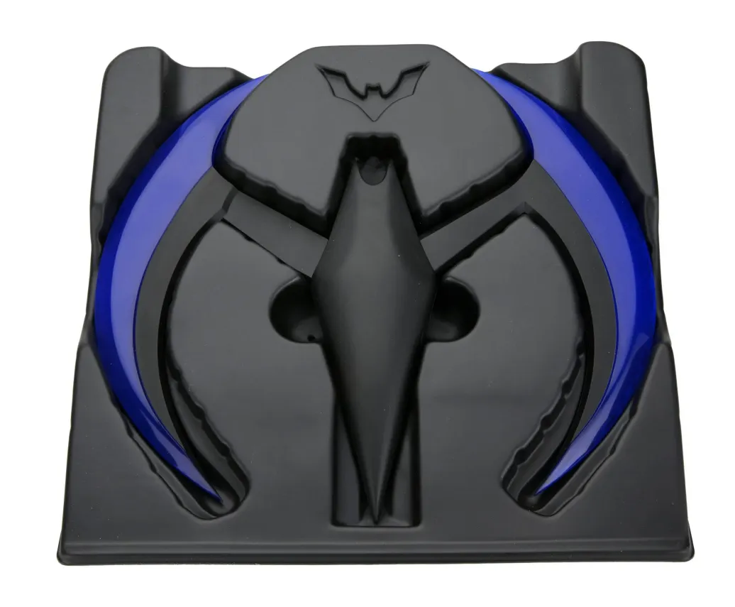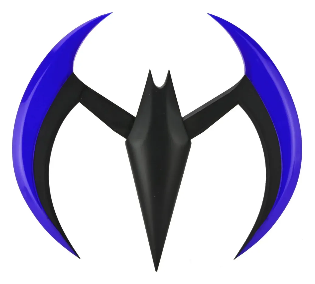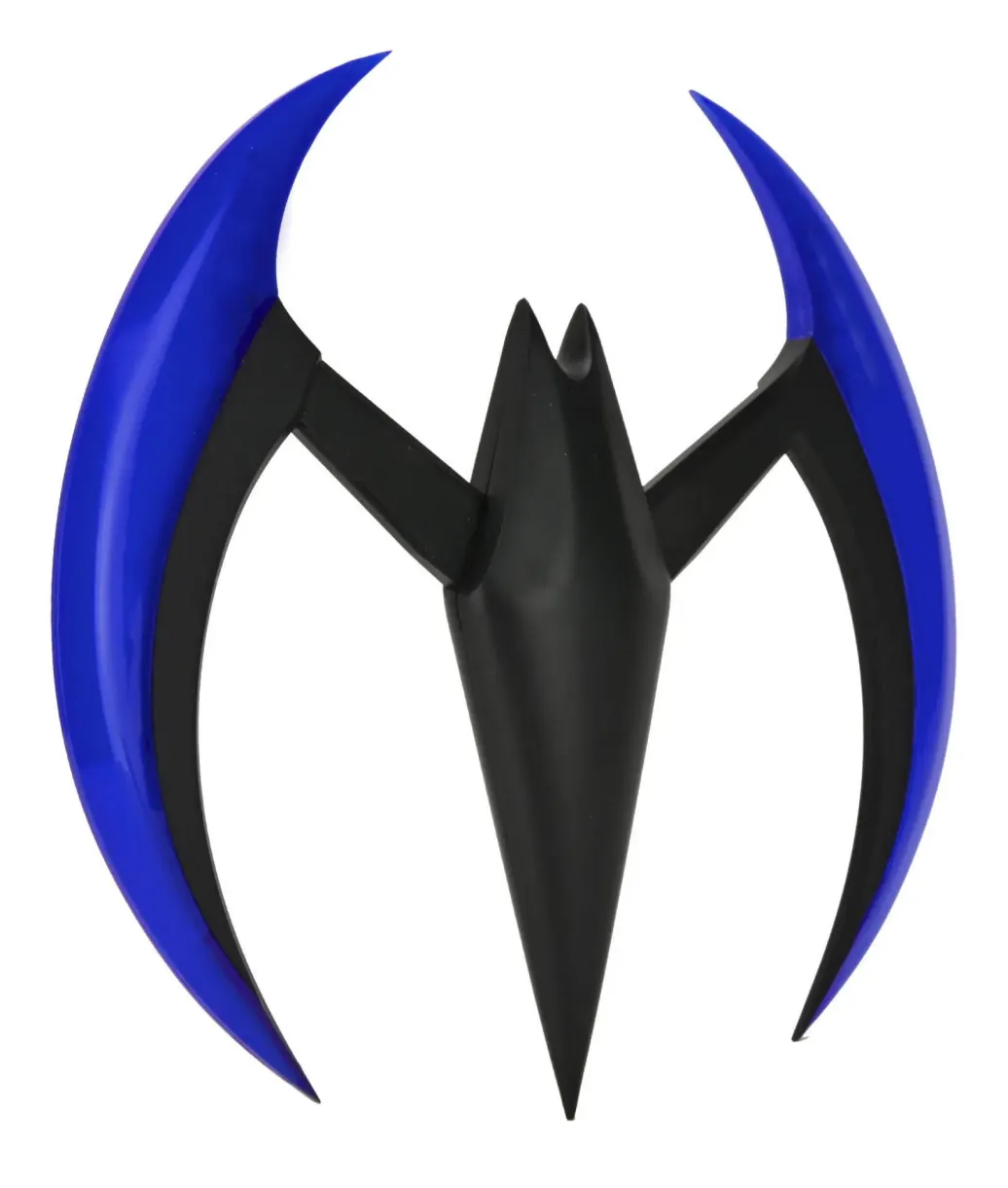 Zur animierten TV-Serie "Batman of the Future" (OT: Batman Beyond) kommt diese offiziell lizenzierte und originalgetreute Nachbildung von Batmans Batarang. Er ist ca. 20 cm breit, verfügt über eine Leuchtfunktion und wird in einem bedruckten Karton geliefert.