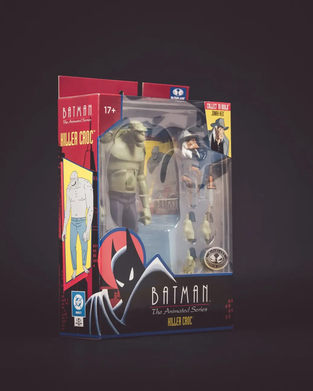 Aus dem DC Universum kommt diese detailreiche, bewegliche Actionfigur. Sie ist ca. 15 cm groß und wird mit weiterem Zubehör, Base und Sammelkarte in einer bedruckten Fensterbox geliefert.