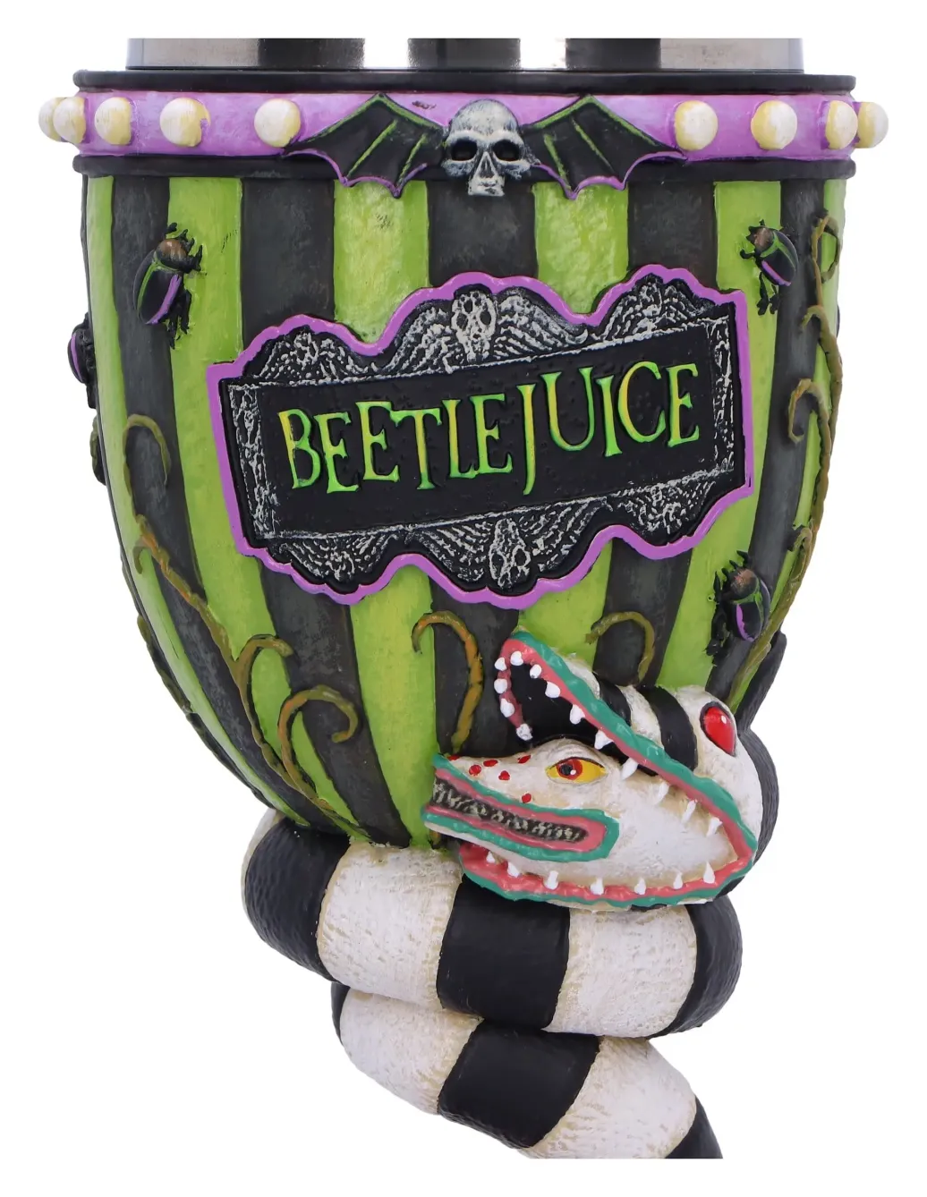 Dieser offiziell lizenzierte Beetlejuice-Kelch ist ein Muss für Fans des Kultklassikers. Mit einer handbemalten, geformten Harzbasis in lebendigen Grün- und Lilatönen und dem ikonischen zweiköpfigen Sandwurm, der sich um den Griff windet, ist er sowohl funktional als auch sammelwürdig. Verpackt in einer offiziell lizenzierten Display-Box mit Schutzeinlagen, ist er perfekt zum Verschenken oder Ausstellen. Ideal für Filmliebhaber, Horrorfans und Halloween-Enthusiasten, verleiht dieser Kelch jeder Sammlung eine gruselige Note. Holen Sie sich ein Stück aus dem Jenseits nach Hause – perfekt, um in einem seltsamen und ungewöhnlichen Stil zu schlürfen!