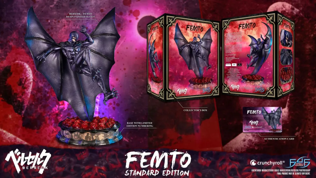 Zum Manga "Berserk" kommt diese limitierte Statue aus hochwertigem Polystone. Das handnummerierte Sammlerstück ist ca. 57 x 38,5 x 68,5 cm groß und wird inklusive Base, styropor-geschützt, in einer bedruckten Box geliefert.