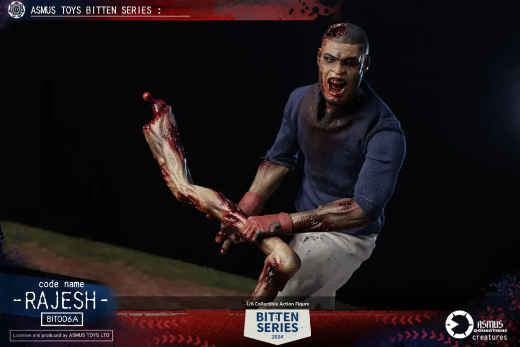 Zur Zombie-Figuren-Reihe "Bitten" von Asmus Collectibles kommt diese großartige Actionfigur im Maßstab 1:6. Sie ist ca. 28 cm groß, trägt echte Stoffkleidung und wird mit Austauschteilen in einer Fensterbox geliefert.