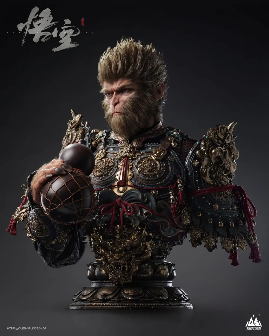 Zu "Black Myth: WuKong" kommt diese detailreiche Büste. Das hochwertige Sammlerstück wurde aus hochwertigem Resin gefertigt. Sie ist ca. 100 x 92 x 70 cm groß und wird inklusive einer Special Base styropor-geschützt im bedruckten Karton geliefert.