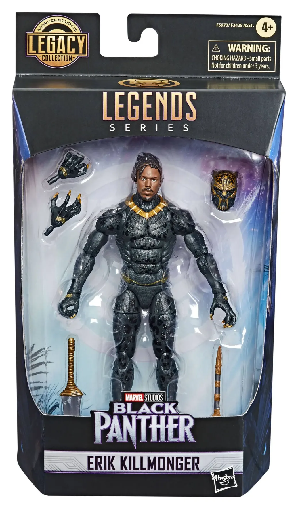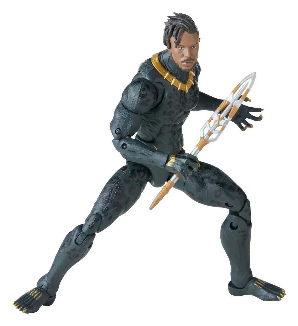 PREMIUM FEATURES UND ACCESSOIRES: Die 15 cm große Killmonger Figur aus der Legends Series wartet mit einem filmnahen Dekor und Details auf und bringt austauschbare Hände, einen zweiten Kopf und 2 Waffen mit