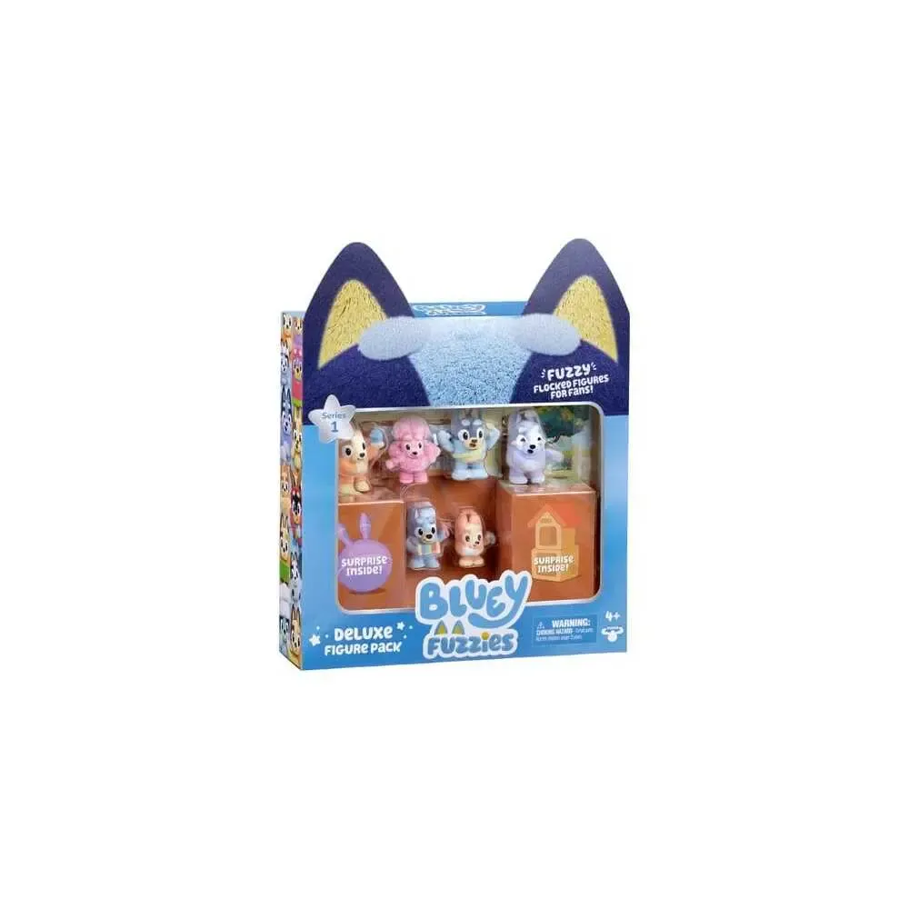 Bluey Fuzzies Deluxe Figuren-Pack. Dieses Produkt ist offiziell von Bluey lizenziert und wird von Moose Toys hergestellt.