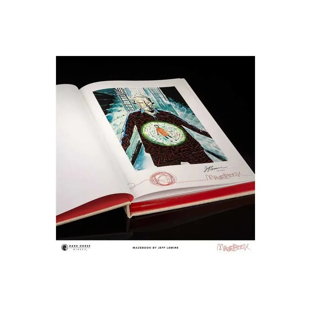 Diese luxuriöse, limitierte und übergroße Hardcover-Ausgabe versammelt die Ausgaben Nr. 1 bis 5 der Bestseller-Serie Mazebook zusammen mit einem gedruckten, von Jeff Lemire signierten Art-Tip-In, einem Leineneinband mit Stickerei, Folienprägung, einem Farbband und Vergoldung sowie einem Skizzenbuchteil mit Pinups von Andrea Sorrentino, Dustin Nguyen, Dean Ormston, Matt Kindt und Gabriel Hernández Walta. Elegant gestaltet von dem preisgekrönten Designer und Kreativdirektor Tom Muller.