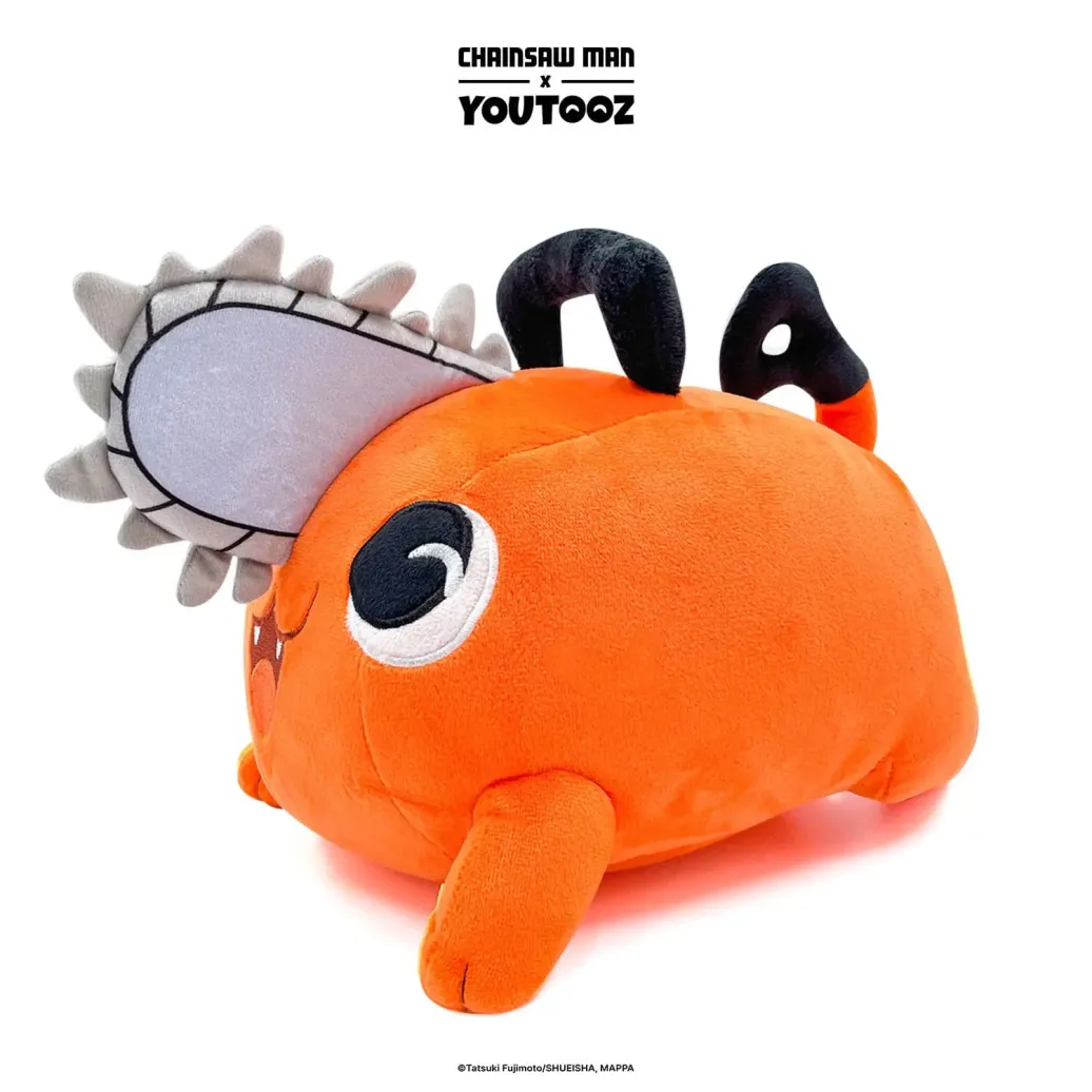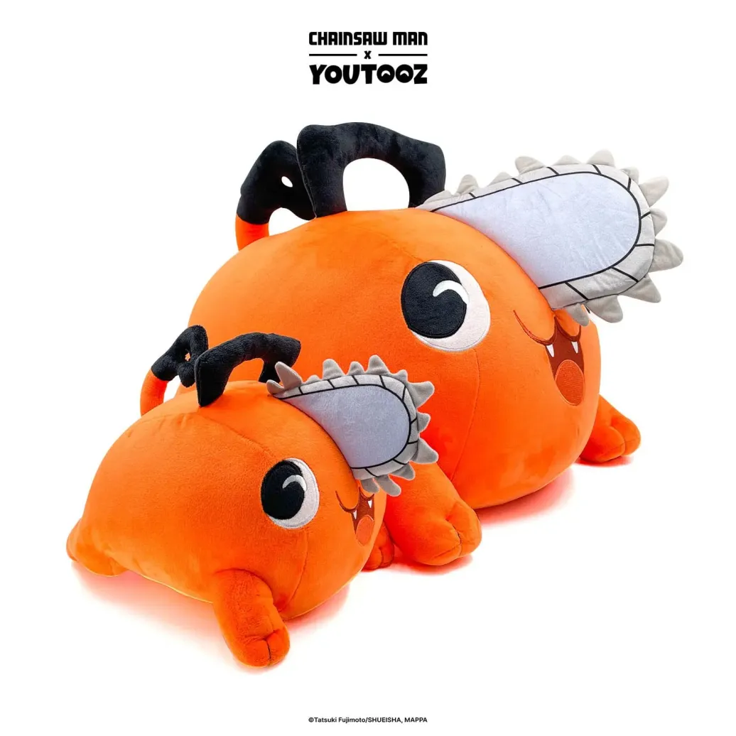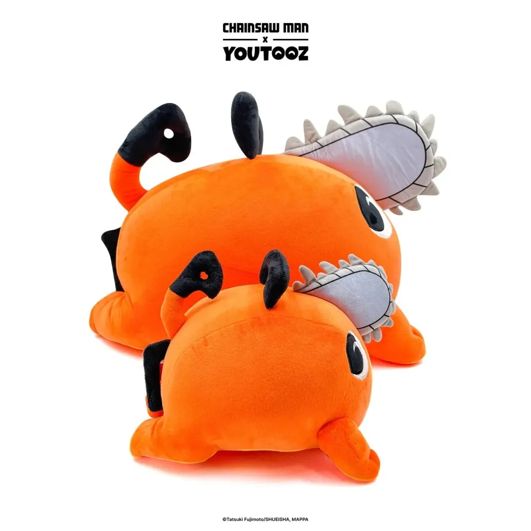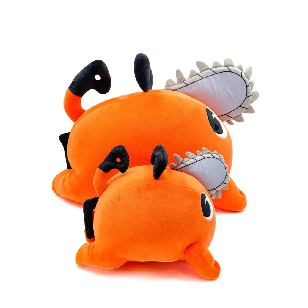 Alle loben die Rückkehr des bezaubernden Pochita! Mit einer Größe von ca. 30 cm liegt er flach auf dem Bauch, während sein leuchtend orangefarbener Körper auf alle Herausforderungen vorbereitet ist, denen ihr euch stellen müsst, während sein stets fröhliches Verhalten dafür sorgt, dass ihr immer ein Lächeln auf den Lippen habt! Mit einer großen grauen Kettensäge in der Mitte seines verzückten Gesichts ist er immer einsatzbereit. Zwei Griffe sind an seinem Kopf und an seinem Hinterteil auf beiden Seiten seines niedlichen Schwanzes angebracht. Pochita ist bis zum Rand mit 100% PP-Baumwolle gefüllt und besteht aus einer Mischung aus normalem und sublimiertem Minky-Material! Er ist perfekt zum Kuscheln oder um ein Stück Brot mit ihm zu teilen!