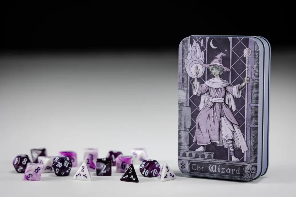 Dieses Set besteht aus 14 polyedrischen Resin Würfeln. Kompatibel mit 5e und Pathfinder Regeln.