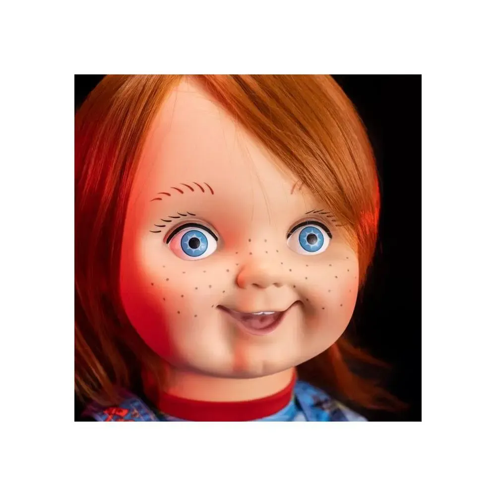 Zum Horrorfilm "Chucky 2 - Die Mörderpuppe ist wieder da" kommt diese offiziell lizenzierte und originalgetreute Nachbildung der Chucky Puppe. Sie ist ca. 76 cm groß und wird in einer bedruckten Fensterbox geliefert.