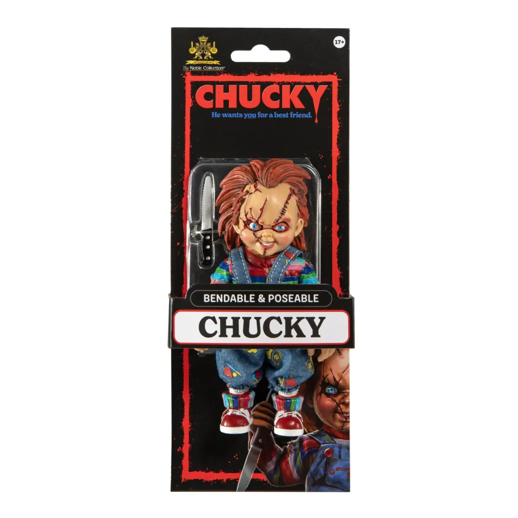 Noble präsentiert diese coole Biegefigur aus dem "Chucky Die Mörderpuppe" Film. Sie ist ca. 14,5 cm groß und lässt sich in viele verschiedene Positionen biegen. Die Figur wurde aus PVC und ABS gefertigt.