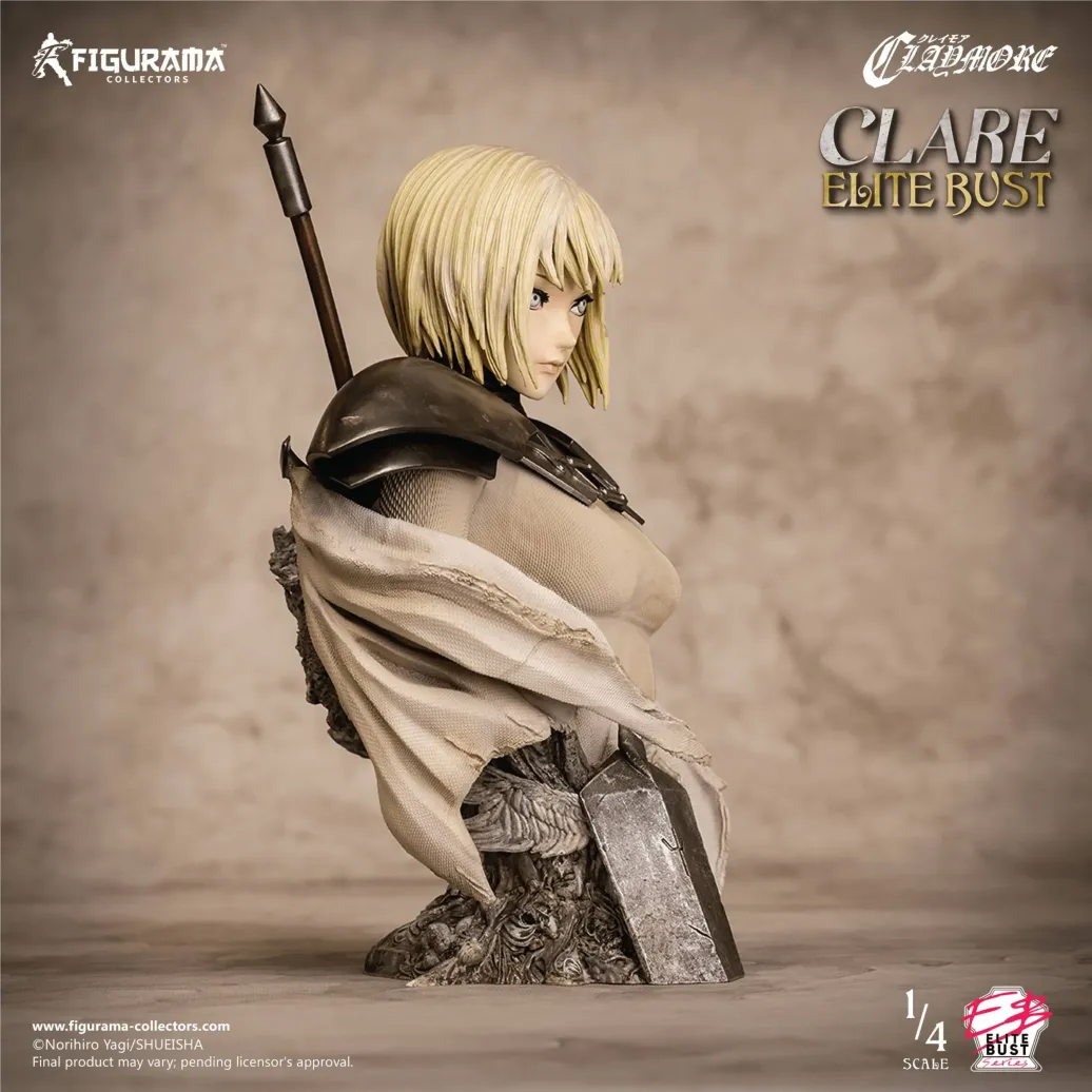 Im Maßstab 1/4 macht Clare eine majestätische Figur, wobei ihr Claymore über eine Schulter ragt. Ihre von der Organisation ausgegebene Uniform zeigt gewebte Textilien und abgewetzte Rüstungen, die einen detaillierten Realismus bieten und die düsteren Folgen ihrer vielen siegreichen Schlachten gegen Yoma, andere Claymore und Erwachte Wesen widerspiegeln.