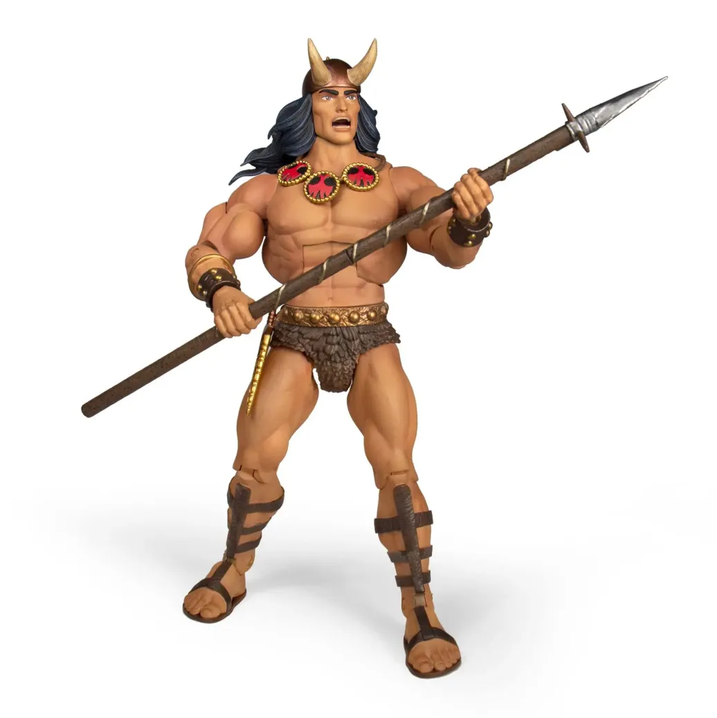 Zur Conan Comic-Reihe kommt diese klassische und voll bewegliche Actionfigur. Sie ist ca. 18 cm groß und wird mit weiterem Zubehör und austauschbarem Kopf in einer mit originalen Comic-Zeichnungen verzierten Box mit Schuber (Slip-Case) geliefert.