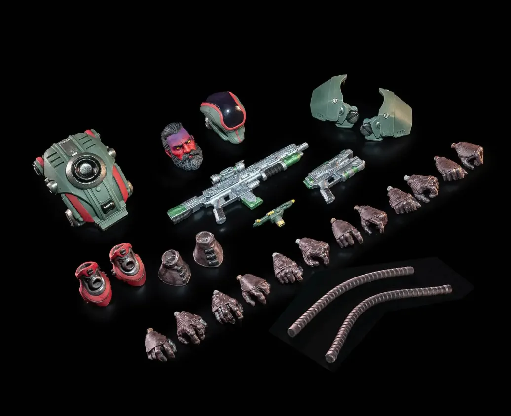 Four Horsemen Toy Design Studios präsentiert eine Reihe von großartigen Actionfiguren aus der Reihe "Cosmic Legions ". Jede Figur kommt mit weiterem Zubehör in einer Blisterverpackung.
