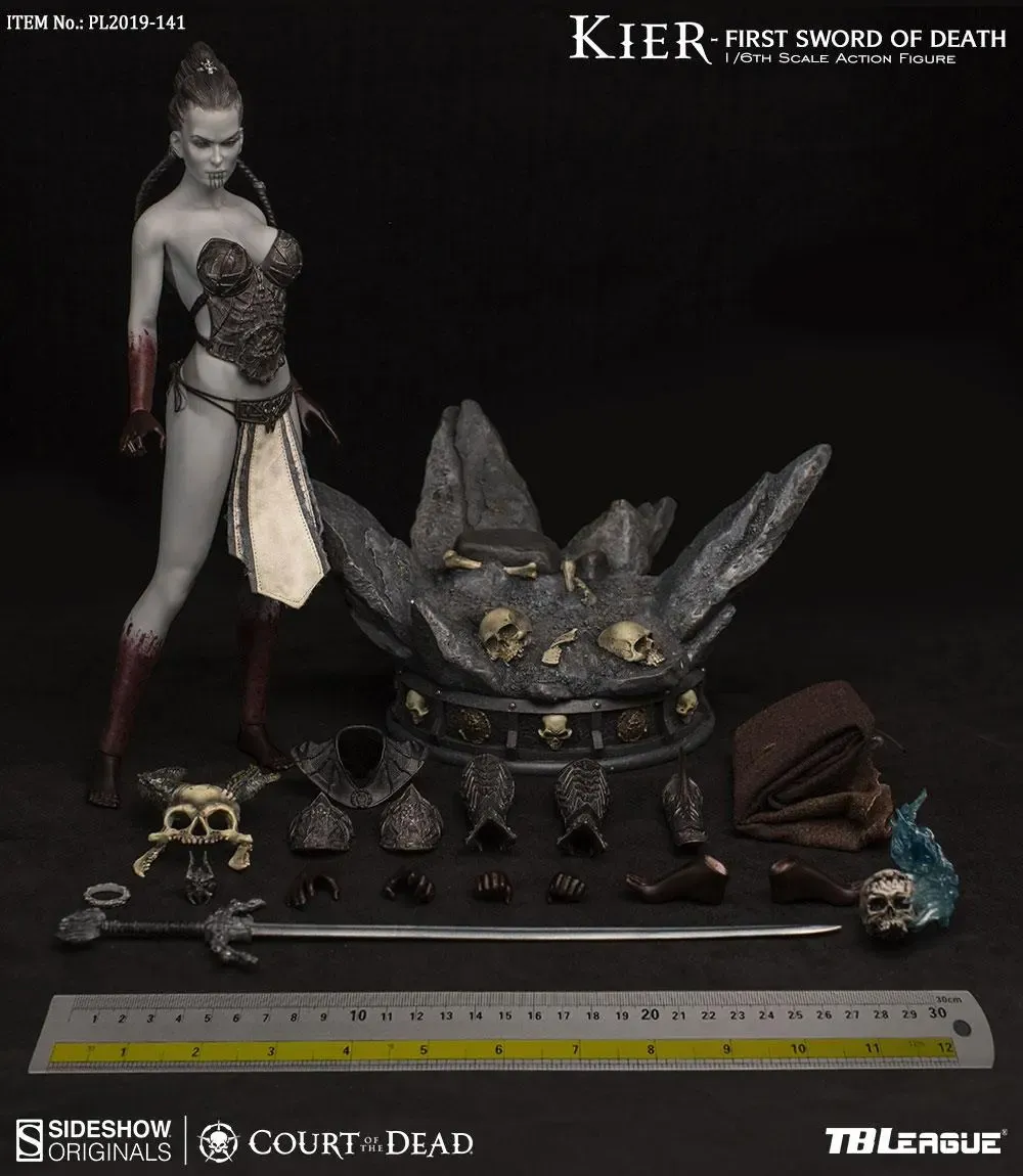 Aus der schaurigen Court of the Dead-Reihe kommt diese detailreiche Kier First Sword of Death Actionfigur im Maßstab 1/6 von Kier. Sie ist ca. 28 cm groß und wird mit weiterem Zubehör, Austauschteilen und Base in einer Geschenkbox geliefert.