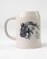 Qualitativ hochwertiger Krug zum Darksiders Videospiel-Franchise von THQ Nordic. Der aus Keramik hergestellte Krug zeigt War's mächtiges Ross Ruin und das Symbol der vier Reiter der Apokalypse auf steinartigem Hintergrund. Die Umverpackung des Kruges besteht zu 100% aus recycelter Kartonage, die mit umweltfreundlichen Farben bedruckt ist, welche eine stoffliche Verwertung der Verpackung nicht behindern und so ein echtes Recycling ermöglicht. Der Krug fasst eine Füllmenge von 500ml und ist Spülmaschinen- und mikrowellengeeignet.