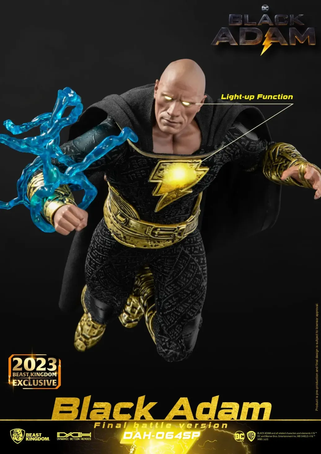 Zu "Black Adam" kommt diese großartige Actionfigur im Maßstab 1:9 aus der "Dynamic 8ction Heroes" Serie von Beast Kingdom Toys. Sie ist ca. 18 cm groß und wird mit weiteren Austausch- und Zubehörteilen in einer bedruckten Box geliefert.