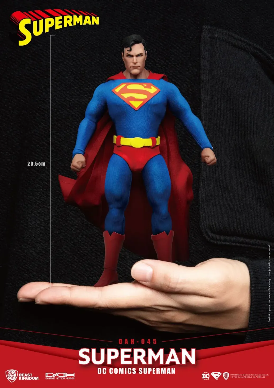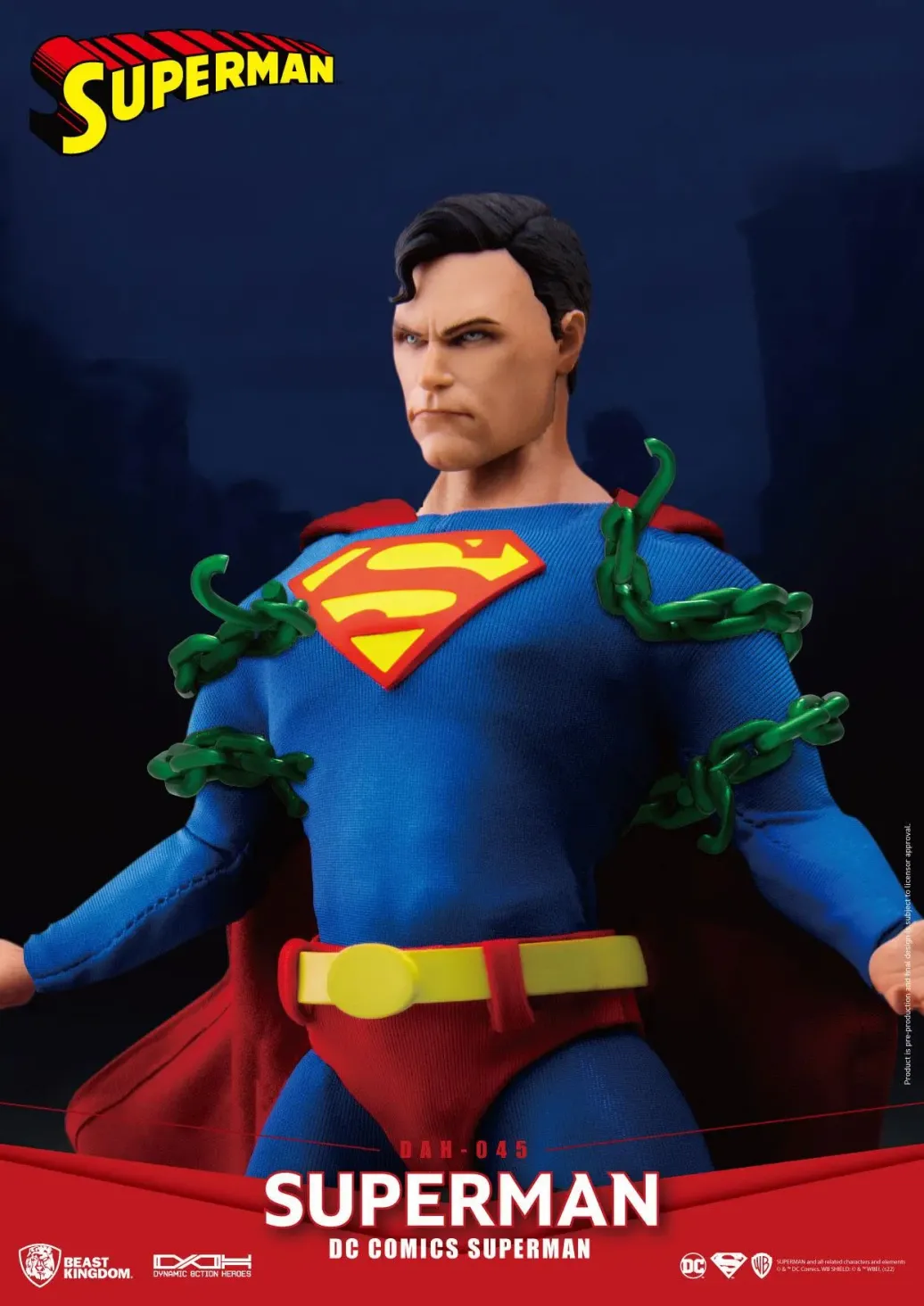 Zu DC Comics kommt diese großartige Actionfigur im Maßstab 1:9 aus der Dynamic 8ction Heroes Serie von Beast Kingdom Toys. Sie ist ca. 20 cm groß und wird mit weiteren Austausch- und Zubehörteilen in einer bedruckten Box geliefert. Sie verfügt außerdem über eingebaute LED Leuchtfunktionen.