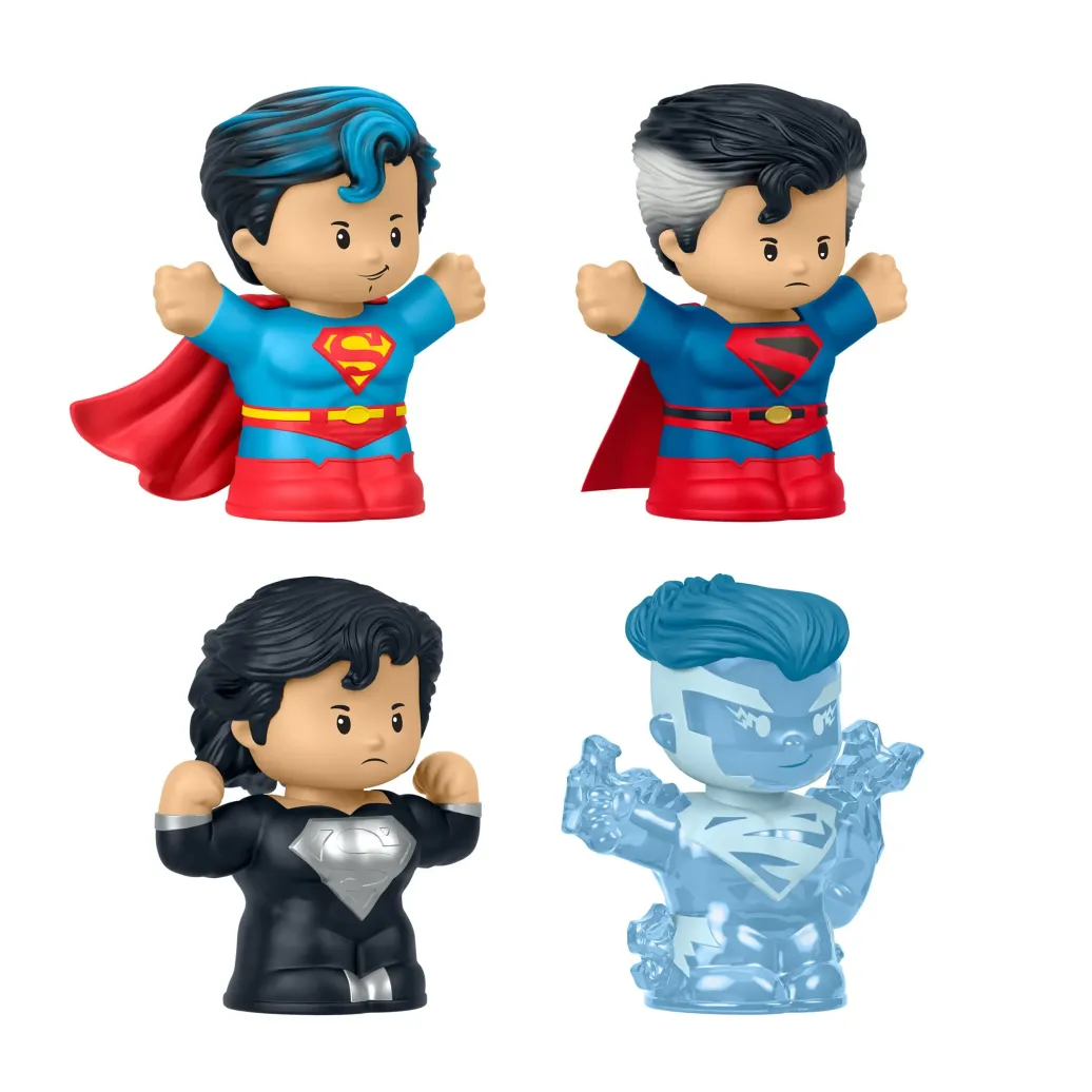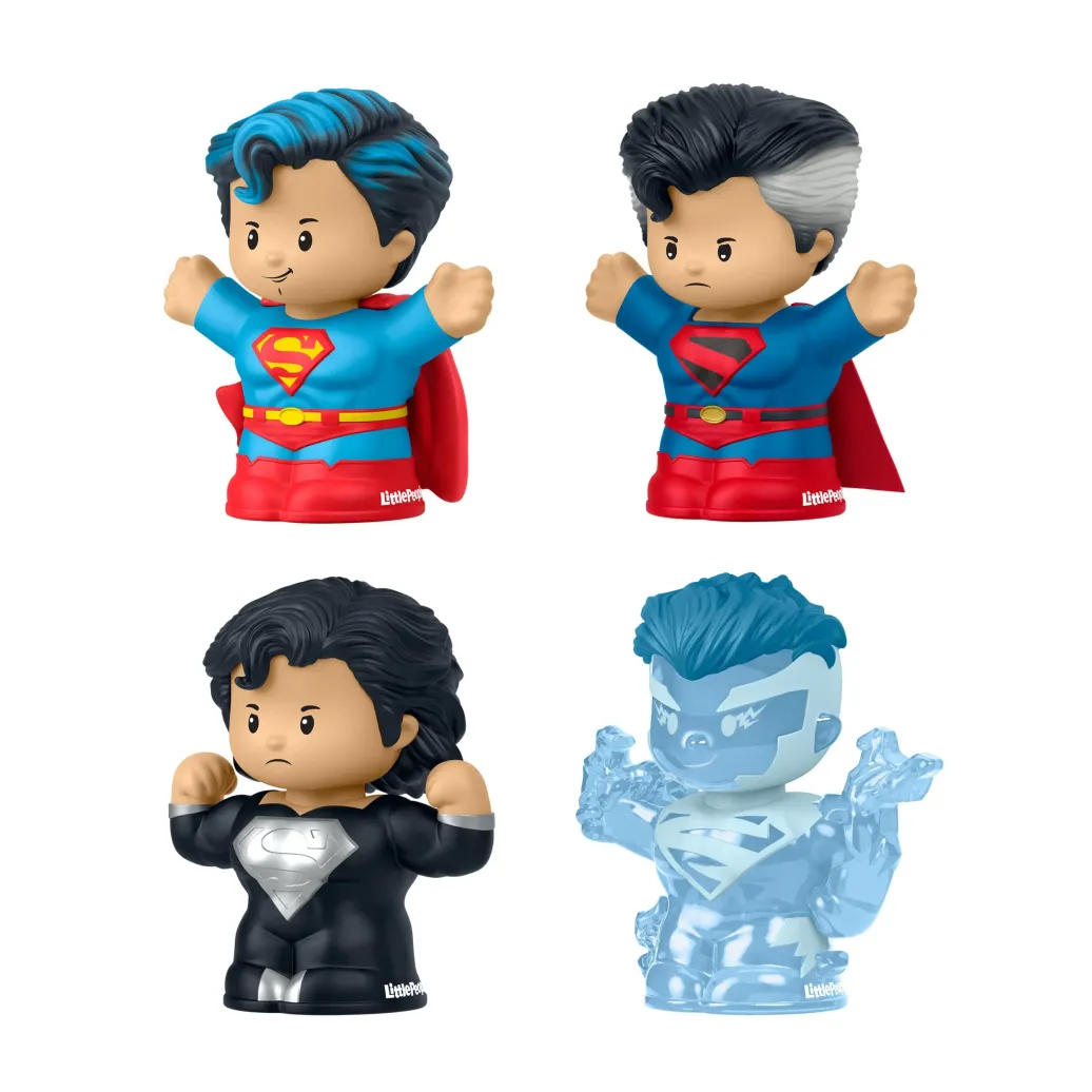 Dieses Little People Collector Superman Through the Ages Set hat eine noch größere Strahlkraft als Kryptonit. Der Mann aus Stahl" wird mit diesem Sondereditions-Figurenset mit 4 kultigen Superman-Looks im typischen Little People-Stil geehrt. Dieses Sammelset hält einige der bei Fans beliebtesten Momente aus der Geschichte des DC-Superhelden fest, von der ursprünglichen Optik in klassischem Blau und Rot über seinen dunklen Recovery Suit nach Supermans Tod bis zum gealterten Superman und seiner denkwürdigen Elektrotransformation. Dieses Little People Collector-Set, das in einer dekorativen, von den Comic-Covern inspirierten Box verpackt ist, ist die perfekte Bereicherung für jede Superman-Sammlung.