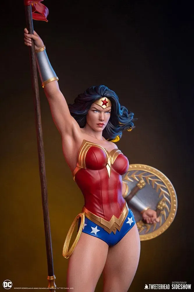 Zu "DC Comics" kommt diese detailreiche Statue aus hochwertigem Resin. Sie ist ca. 69 x 28 x 22 cm groß und kommt inklusive Base in einer Geschenkverpackung.