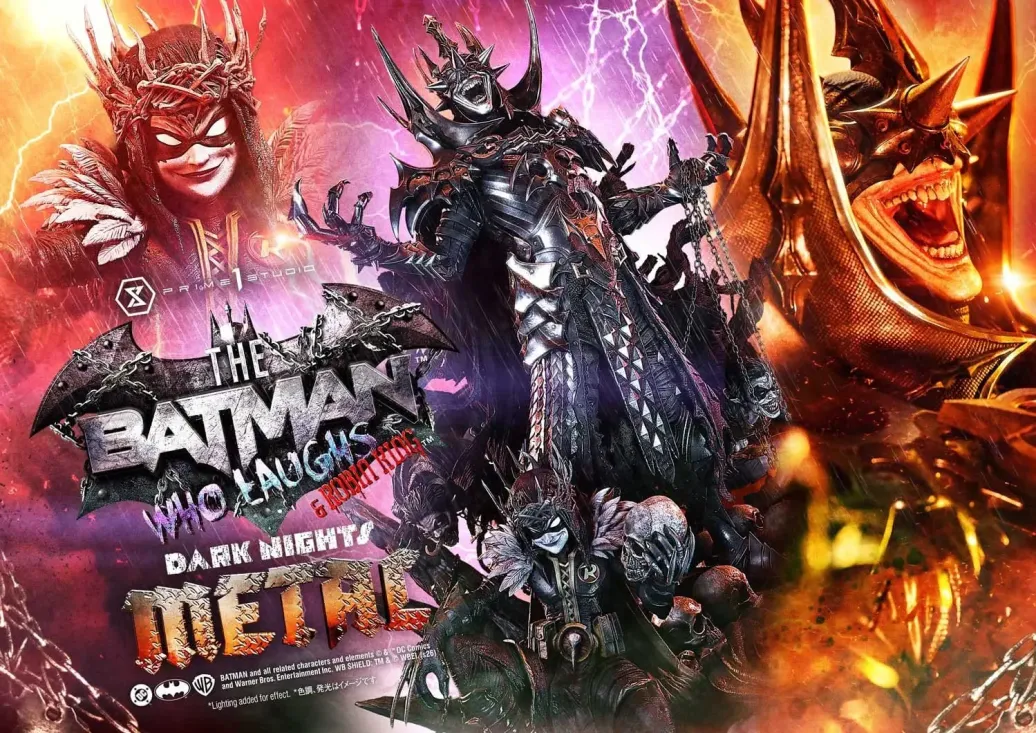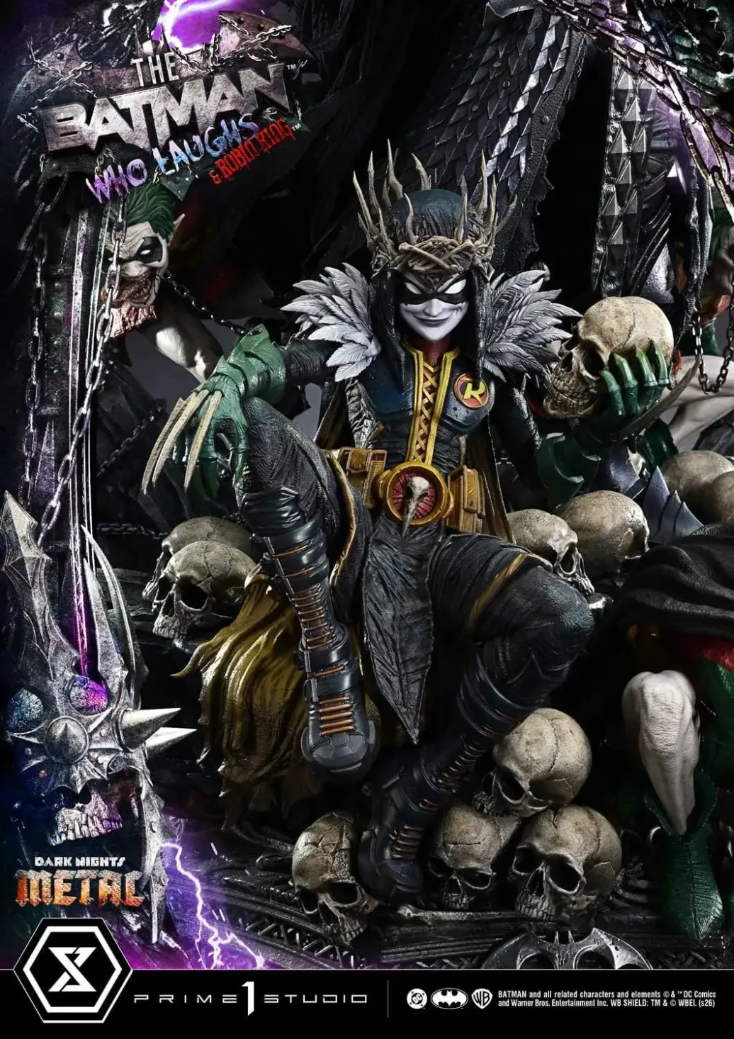 Ein Eroberer, der die Welt mit dem Bösen befleckt. Ein unschuldiger König, der sich am Bösen ergötzt. Die Resonanz ihres Wahnsinns – manifestiert in einer Höllenlandschaft im Maßstab 1:3. Aus „Dark Nights: Death Metal“, dem epischen Event, das den finalen Kampf um das Schicksal des DC-Universums in den frühen 2020er Jahren schildert, gesellen sich „Batman Who Laughs“ und „Robin King“ zur Museum Masterline. Nachdem er sich die Macht von Dr. Manhattan angeeignet hat, ist „The Batman Who Laughs“ zu einem fast gottgleichen Wesen aufgestiegen. Der Robin King, getrieben von seinen angeborenen Impulsen, schwelgt in Brutalität. Diese Statue im Maßstab 1:3 fängt diese beiden Superschurken ein, deren Beziehung über die eines Meisters und Dieners hinausgeht. Um ihre überwältigende Präsenz noch weiter zu betonen, wurde der höllische Sockel mit viel Liebe zum Detail und sorgfältiger Komposition gestaltet. „The Batman Who Laughs“ steht in einer gebieterischen Pose und verkörpert immense Macht und Ambition. Ein radikal neu interpretiertes Visier. Stahltöne mit einem subtilen Blaustich. Ein unheimlicher schwarzer Umhang, der bedrohlich weht. Jedes Element der Farbgebung und der Formgebung fügt sich zu einer dunklen und majestätischen Präsenz zusammen. Im Gegensatz dazu steht der Robin King in einer Pose, als würde er gespannt auf seine nächste Gräueltat warten. Sein listiges, furchtloses Grinsen – das sich von dem der Groblins unterscheidet – wurde aufwendig modelliert. In seinem kleinen Körper verbirgt sich pure, ungefilterte Boshaftigkeit, die sich in jedem feinen Detail ausdrückt. Zwei Formen des Wahnsinns, zum Leben erweckt in atemberaubenden dreidimensionalen Details – fügen Sie sie Ihrer DC-Sammlung hinzu.