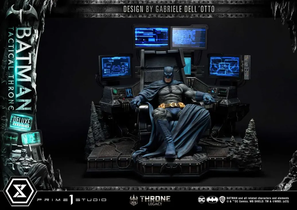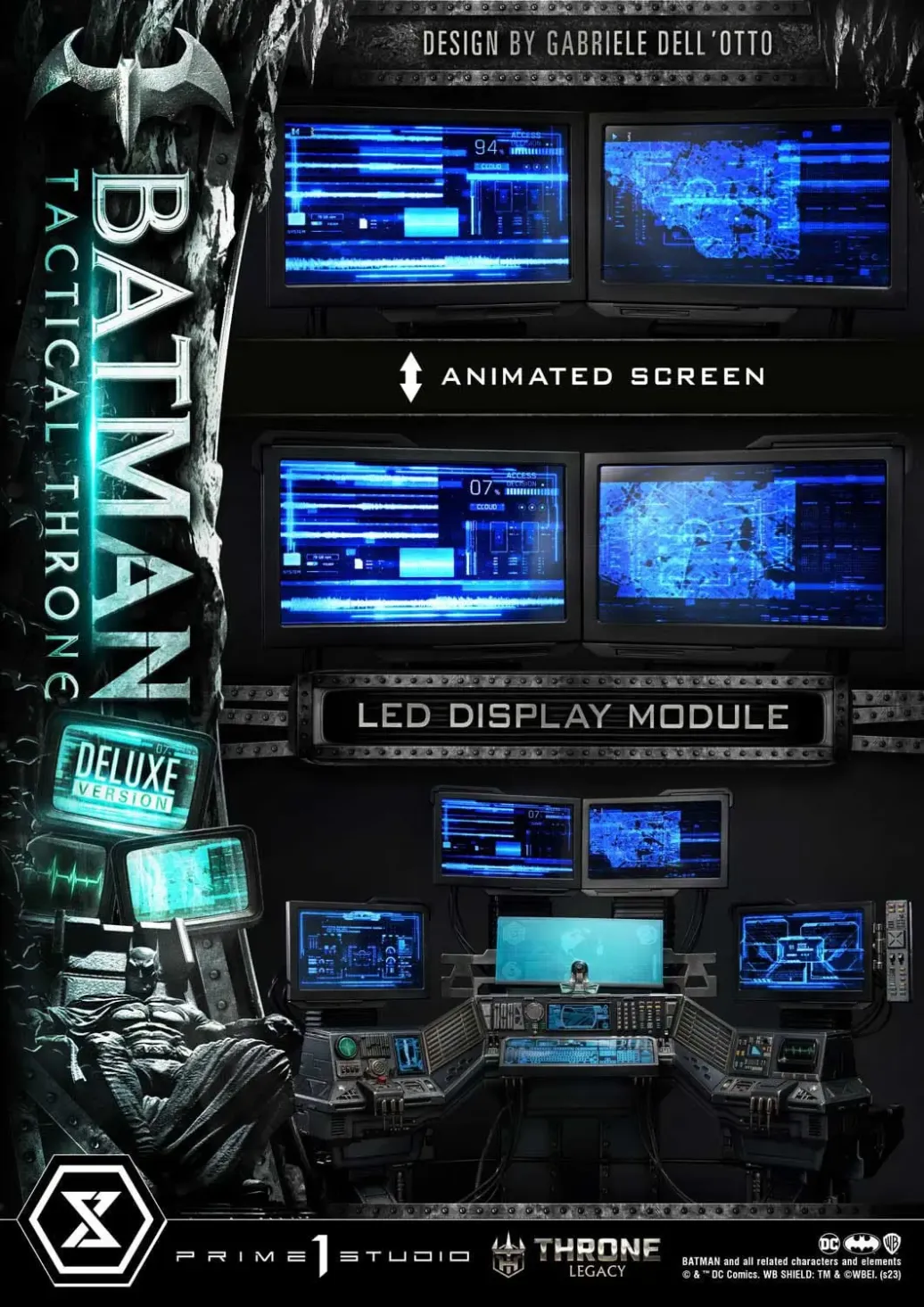 - Base im Batcave-Design mit vier beleuchteten Monitoren