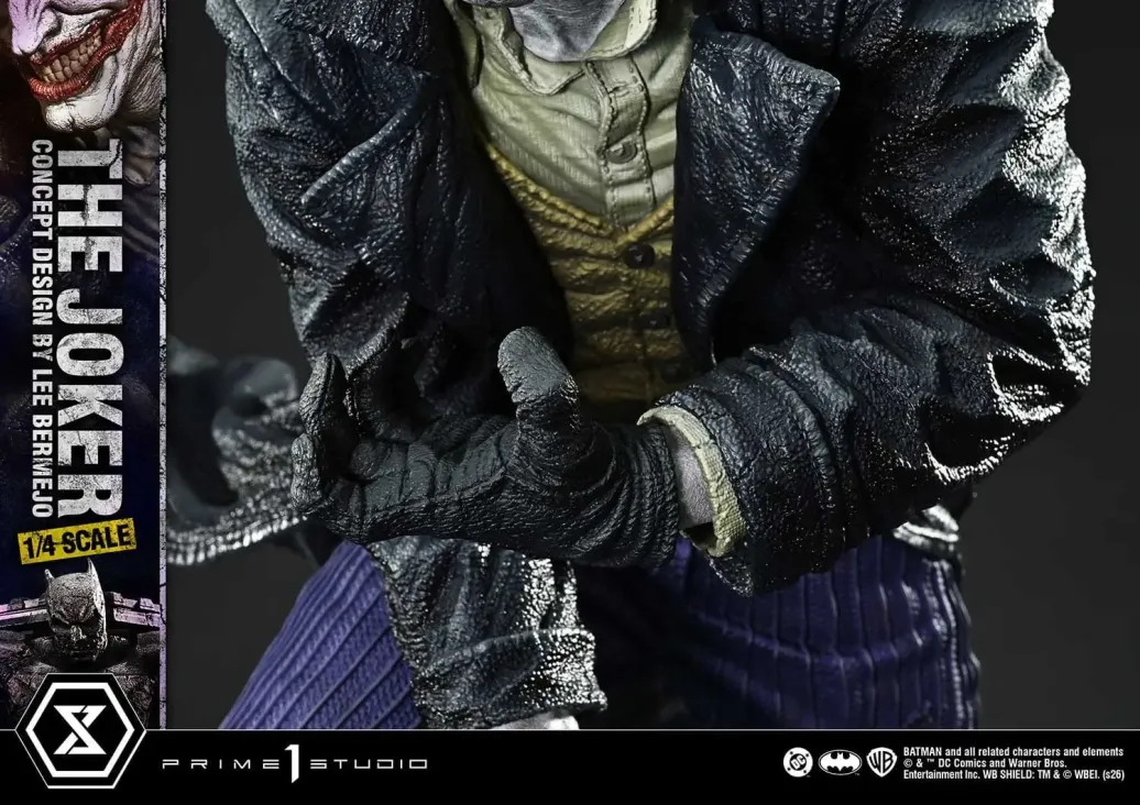 „ES WIRD IMMER EINEN JOKER GEBEN.“ Neugestaltung von Lee Bermejo's Konzept im Maßstab 1:4 Geschrieben von Brian Azzarello. Illustriert von Lee Bermejo. Aus dem Crime-Noir-Graphic-Novel, das in den 2000er Jahren einen großen Einfluss hatte, tritt „The Joker“ der Ultimate Premium Masterline bei. Mit Bermejo selbst als Konzeptdesigner kehrt die 2019 angekündigte Statue im Maßstab 1:3 zurück – nun in einem kompakteren Maßstab von 1:4 realisiert. Rötliches Augenweiß, ein mit rohem Realismus aufgerissener Mund und ein vergilbter Zahnsatz, der einen beunruhigenden Eindruck hinterlässt. Die blassen Gesichtselemente wurden mit über etwa sieben Jahre verfeinerter Bildhauerei und Bemalung aktualisiert. Vom schwingenden Mantel bis zu den exotischen Lederschuhen fängt jedes Detail Bermejo's Stil mit hoher Treue ein. Die spezielle Basis enthält auch Motive aus „Batman: Noël“. Batman, seiner Freiheit beraubt. Robin erscheint an der Seite. Das Bat-Signal ist auf der Rückseite eingraviert. Indem diese Elemente unter ihm platziert werden, wird die Präsenz des Jokers noch weiter betont. Mit einer displayfreundlichen Größe und weiterentwickeltem dreidimensionalem Ausdruck kehrt Lee Bermejo's Joker erneut zurück. Holen Sie ihn in Ihre DC-Sammlung.