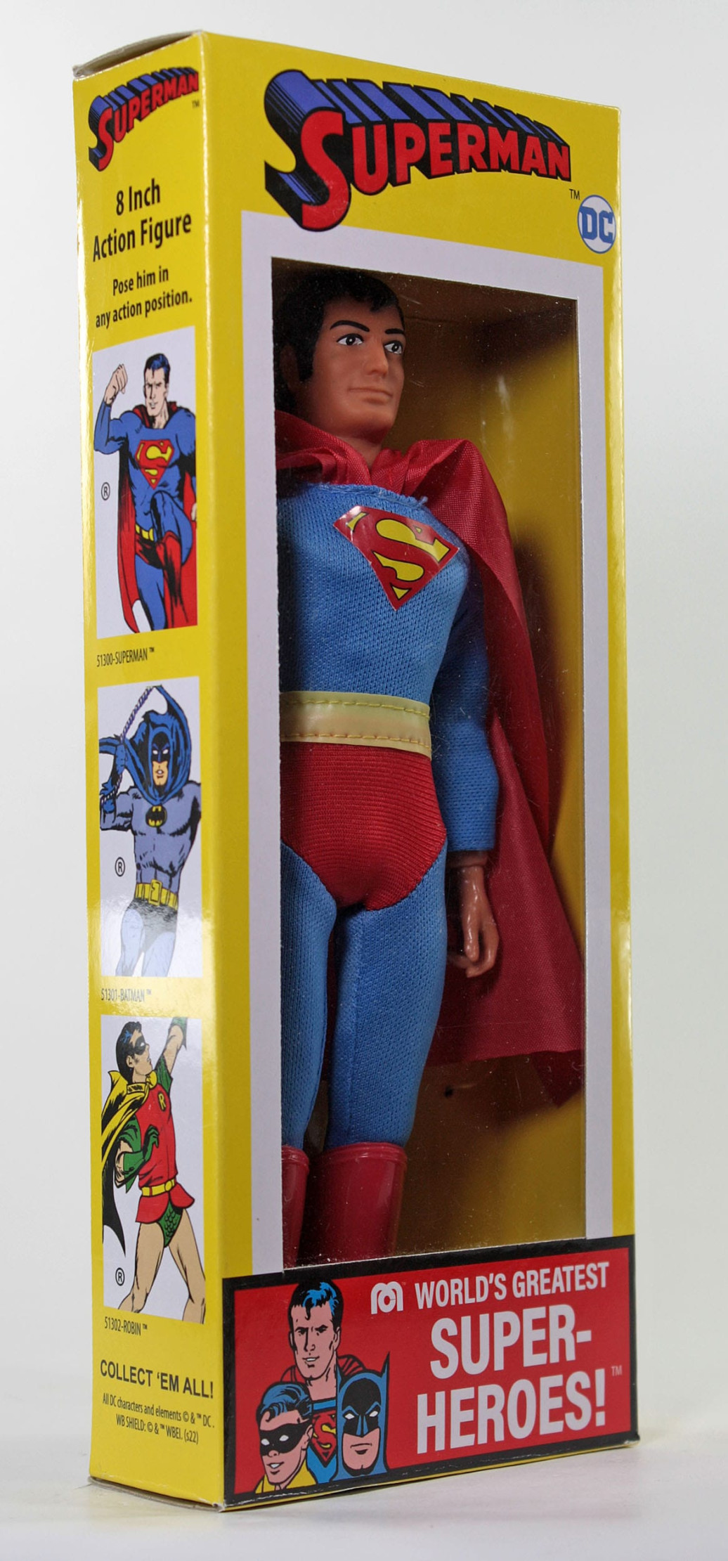 Die MEGO-Figuren im Retro-Stil sind ca. 20 cm groß, tragen echte Stoffkleidung und werden mit weiterem Zubehör geliefert.