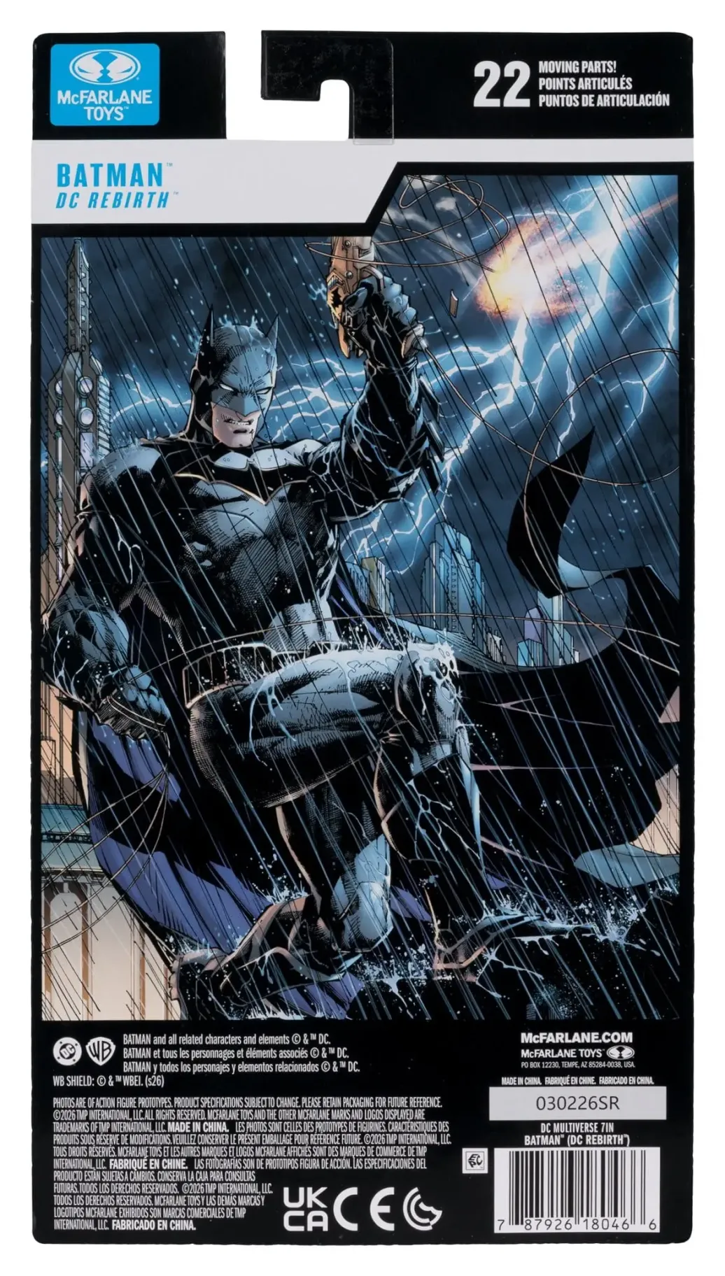 Als Kind musste Bruce Wayne mit ansehen, wie seine Eltern in der Crime Alley von Gotham City brutal ermordet wurden. Traumatisiert durch ihren Tod widmete er sein Leben dem Ziel, die größte Waffe der Welt gegen das Verbrechen zu werden – Batman! Um der ultimative Vigilant zu werden, disziplinierte der Dunkle Ritter seinen Geist und Körper, um den Gipfel der geistigen und körperlichen Überlegenheit in seinem unerbittlichen Streben nach Gerechtigkeit zu erreichen!<br><br>- Unglaublich detaillierte Figuren im 18 cm Maßstab, basierend auf dem DC Multiverse<br>- Entworfen mit Ultra Articulation mit bis zu 22 beweglichen Teilen für eine große Auswahl an Posen und zum Spielen<br>- Batman ist in seinem Look aus DC Rebirth dargestellt<br>- Sammle alle McFarlane Toys DC Multiverse Figuren<br><br>Größe: 18 cm